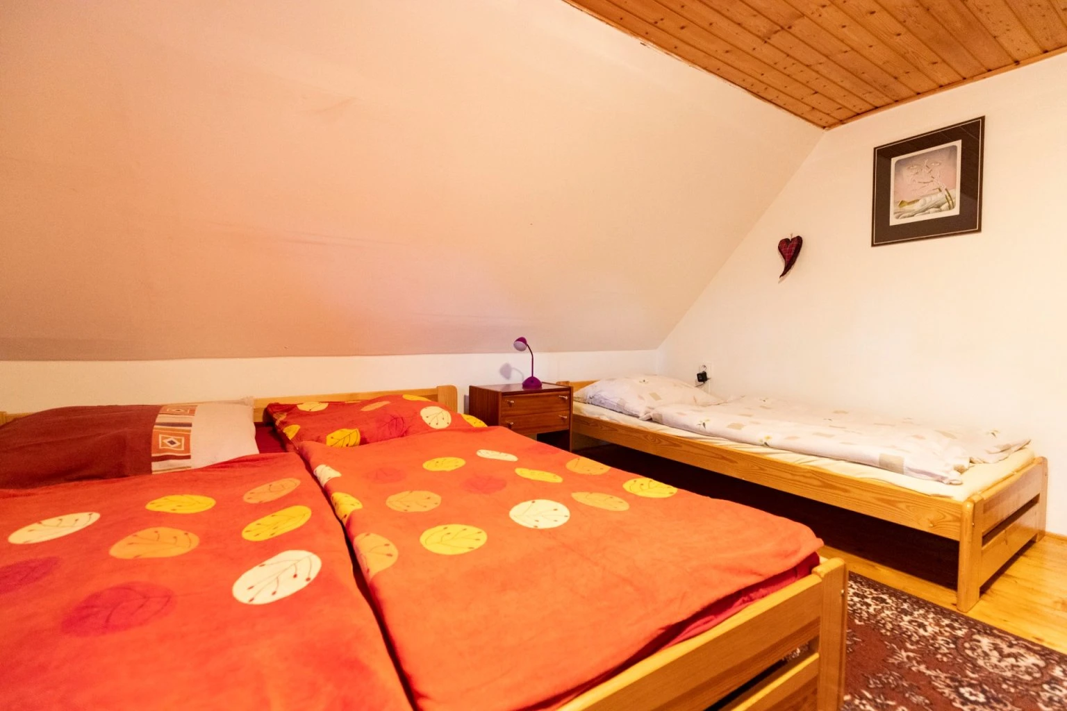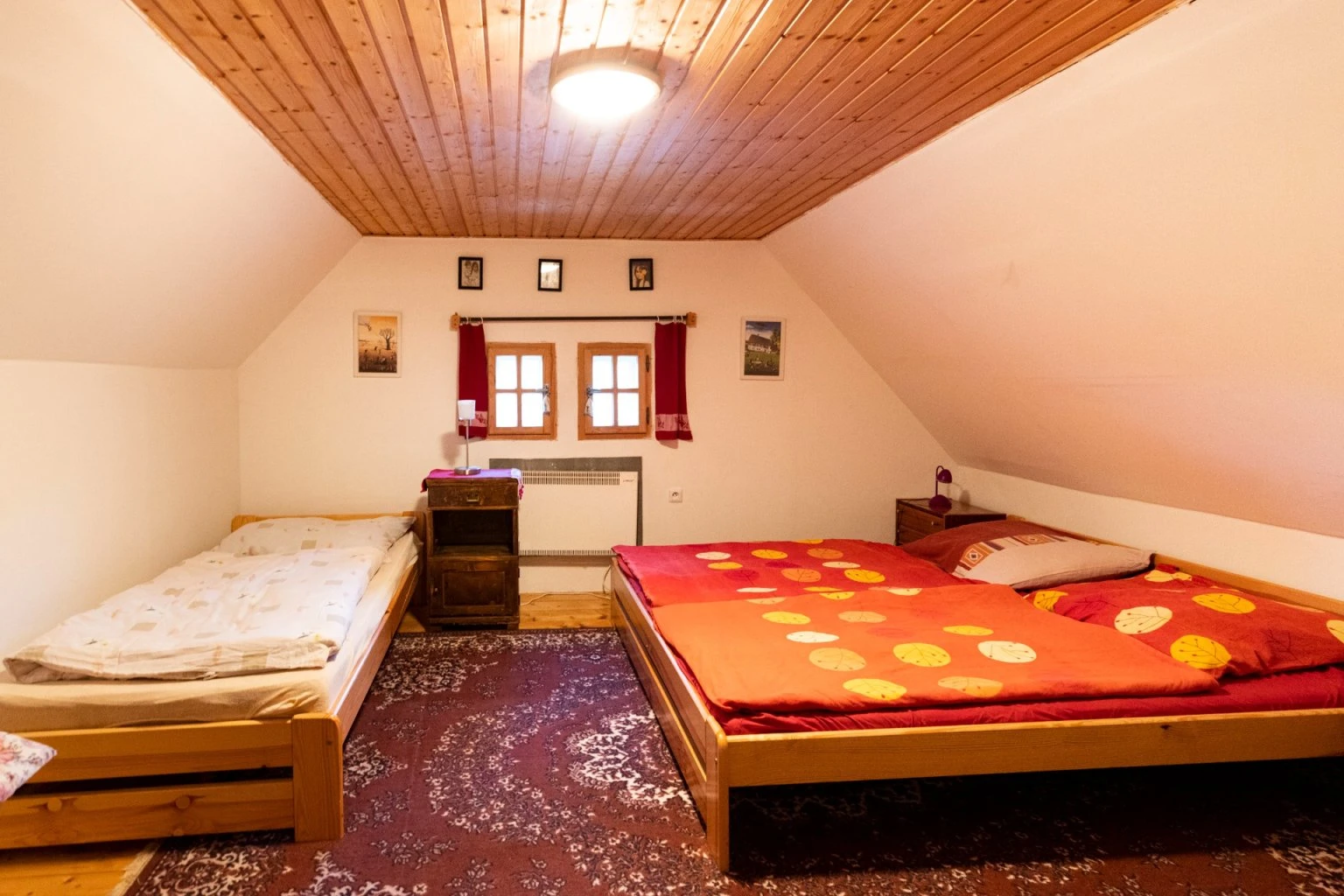 - 4 dřevěné postele (1 manželská + 2 samostatné)