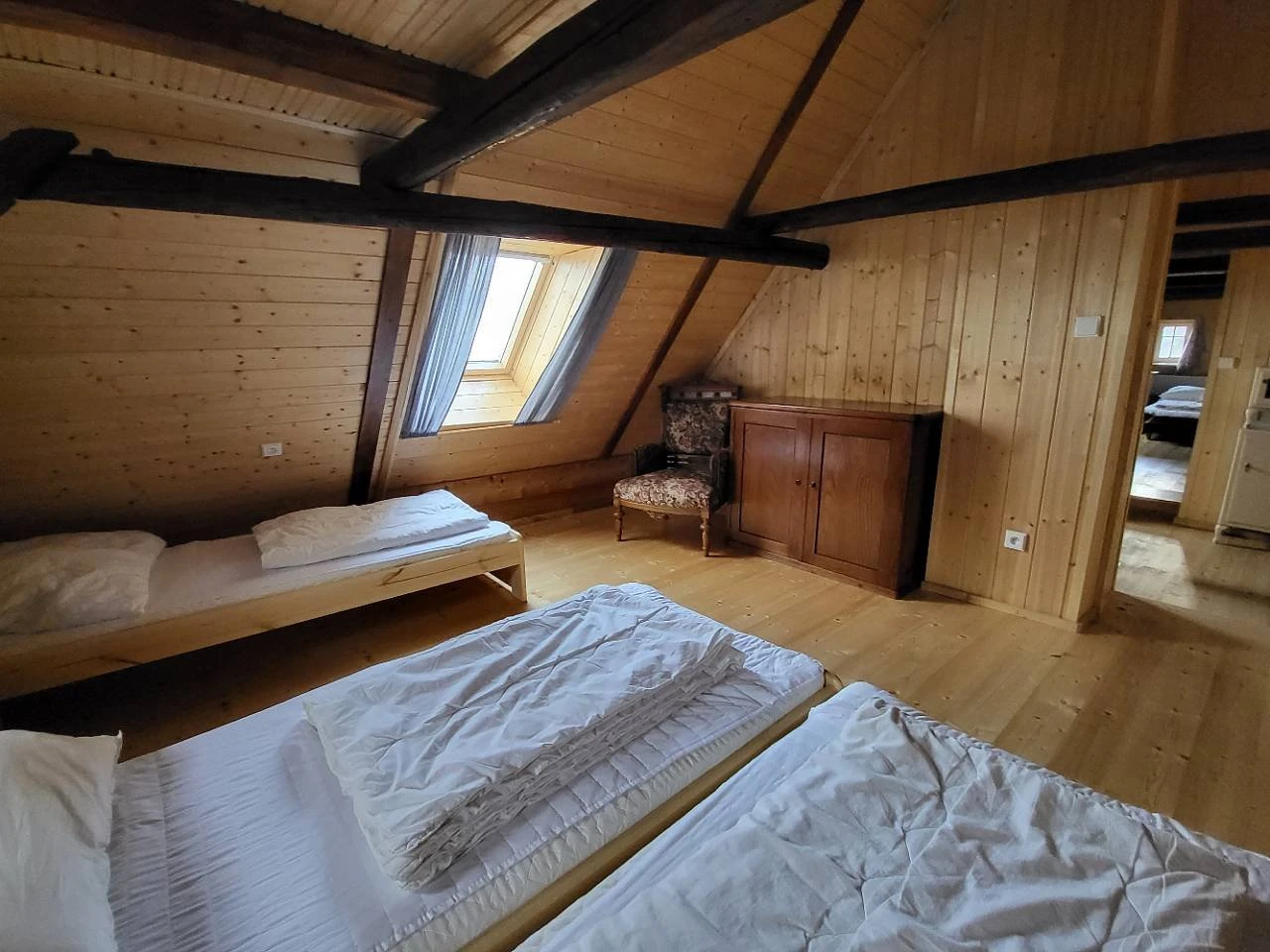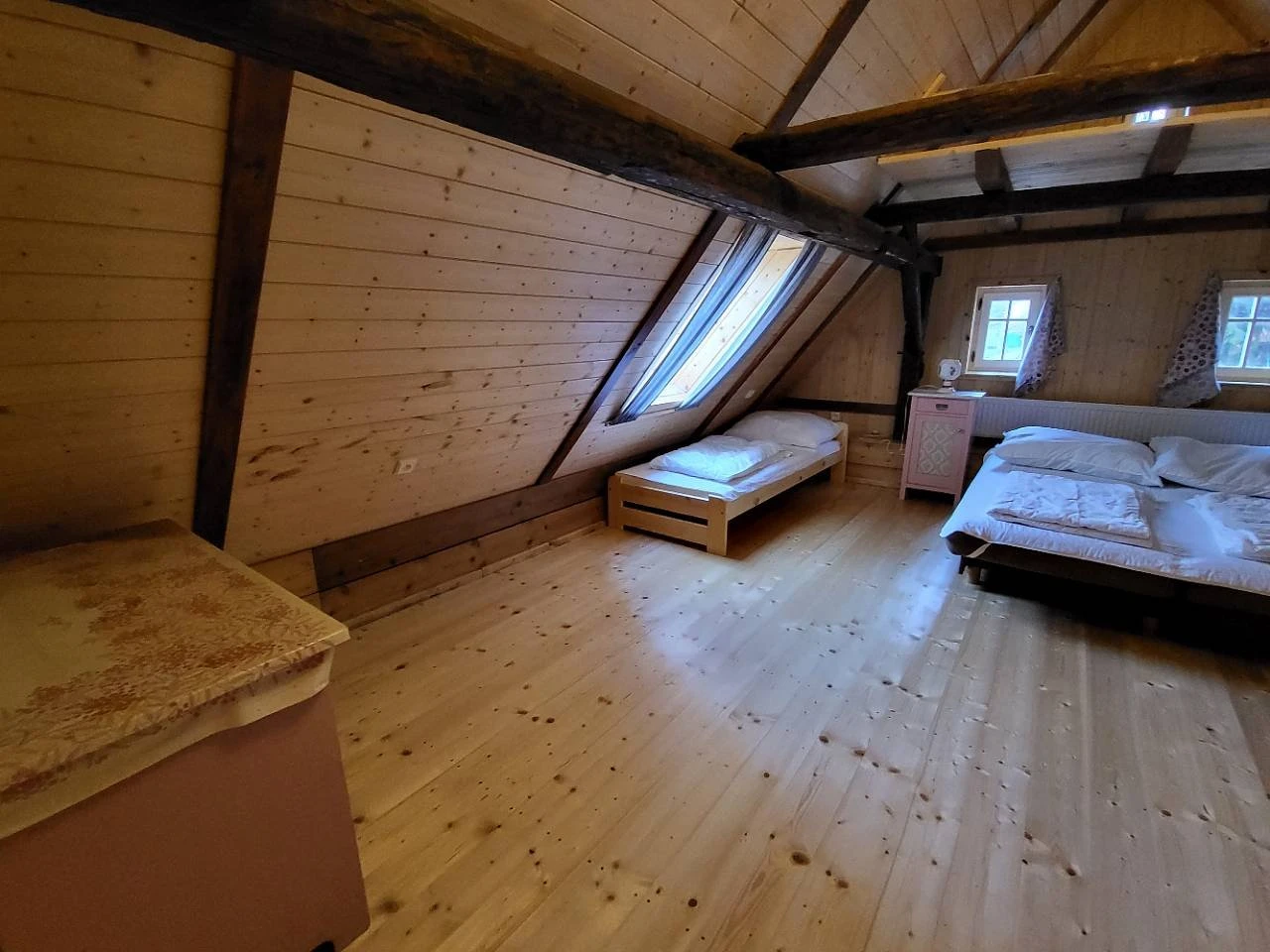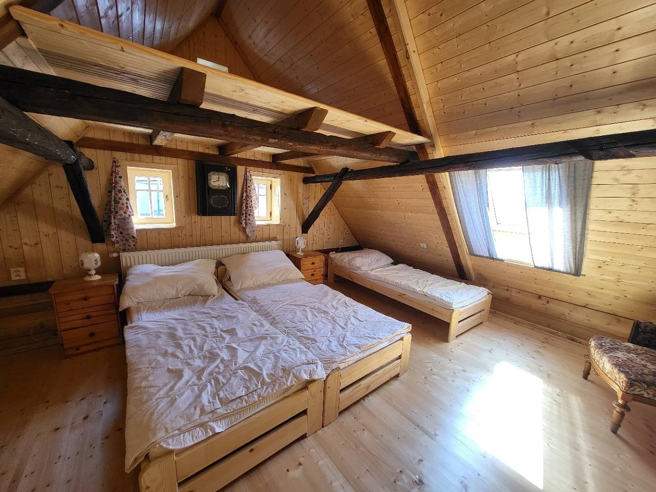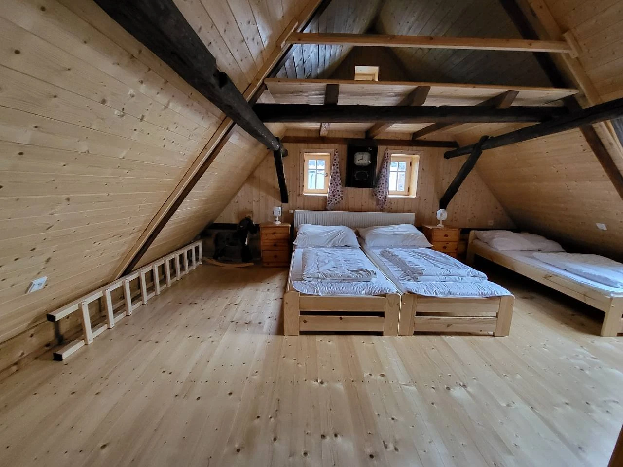 V přízemí se nachází vstupní chodba, předsíň, dřevník, samostatné WC, koupelna s vanou, obytná světnice s krbovými kamny a TV a plně vybavená kuchyň. V patře jsou dva pokoje – čtyřlůžkový a třílůžkový pokoj s možností přistýlky. Nad schodištěm je menší odpočinková místnost s úložnými prostory. Součástí přízemí je také technická místnost pro úschovu kol nebo lyží.