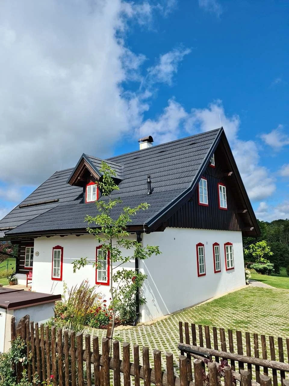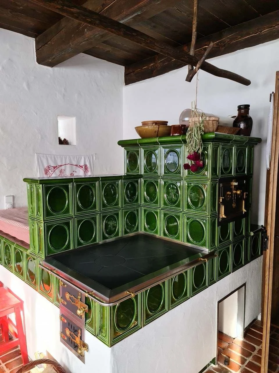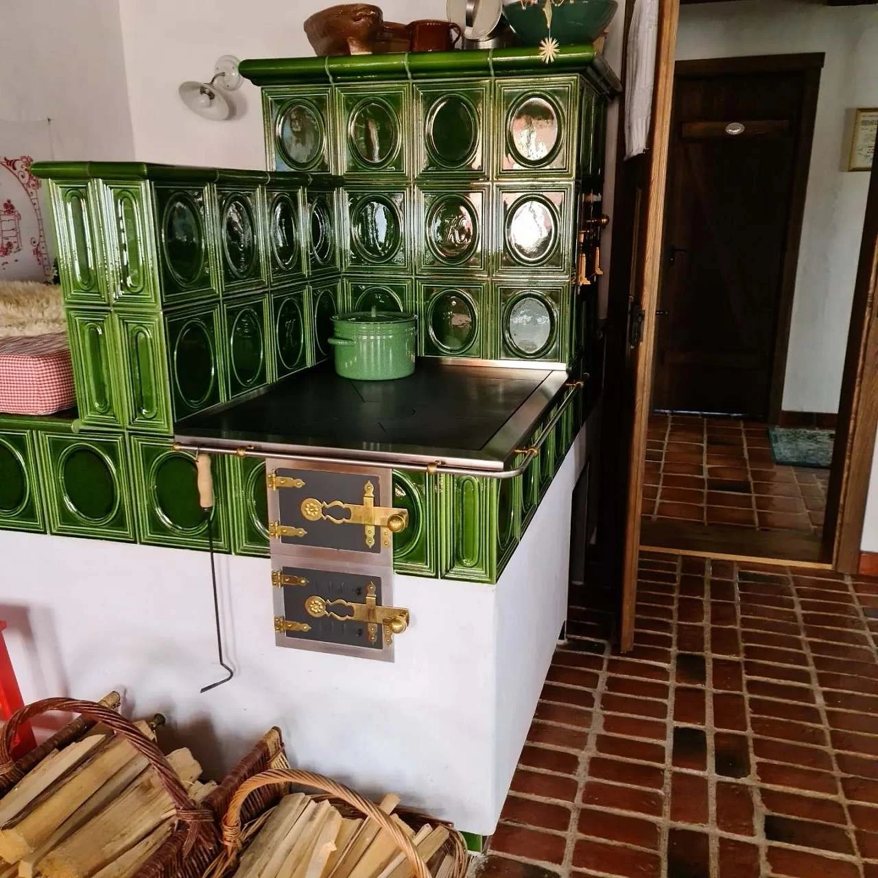 - Vytápění: podlahové (plynové) + možnost topení dřevem v peci