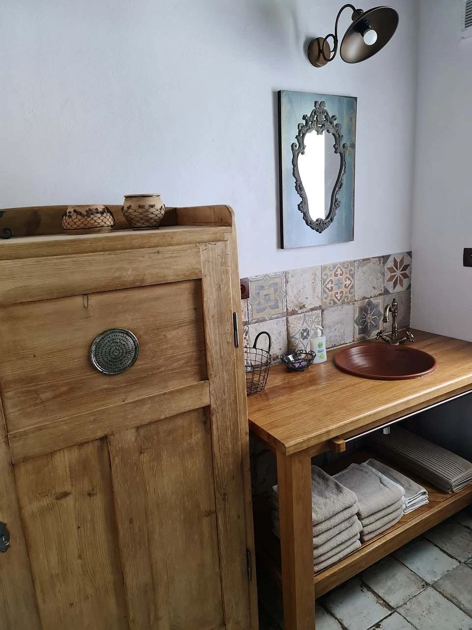 V objektu se nacházejí dvě koupelny. Koupelna v přízemí je vybavena sprchovým koutem, umyvadlem, ručníky a fénem. Koupelna v patře má rohovou vanu, sprchový kout, umyvadlo, ručníky a fén. K dispozici jsou dvě samostatná WC s umyvadly, jedno v přízemí a jedno v patře.