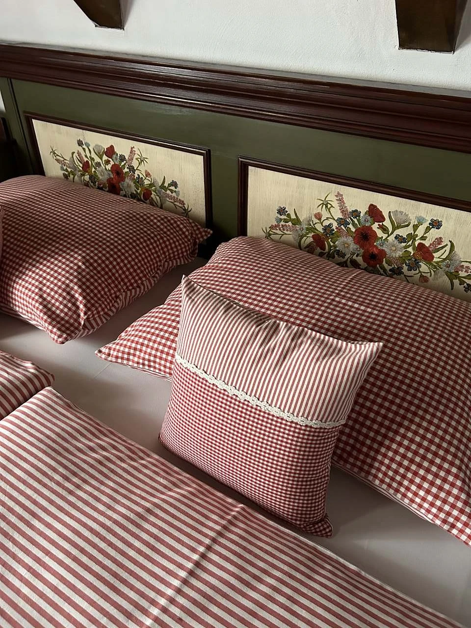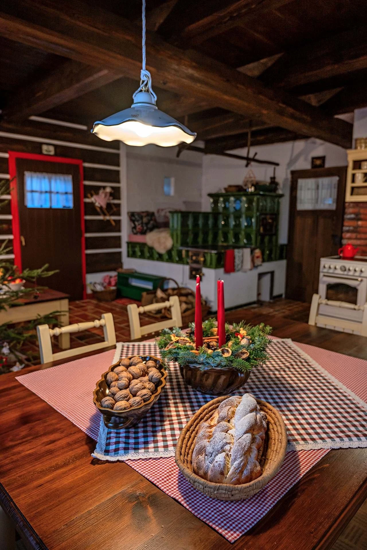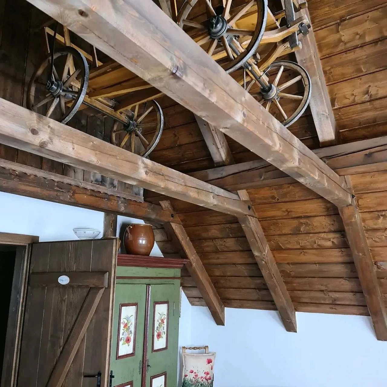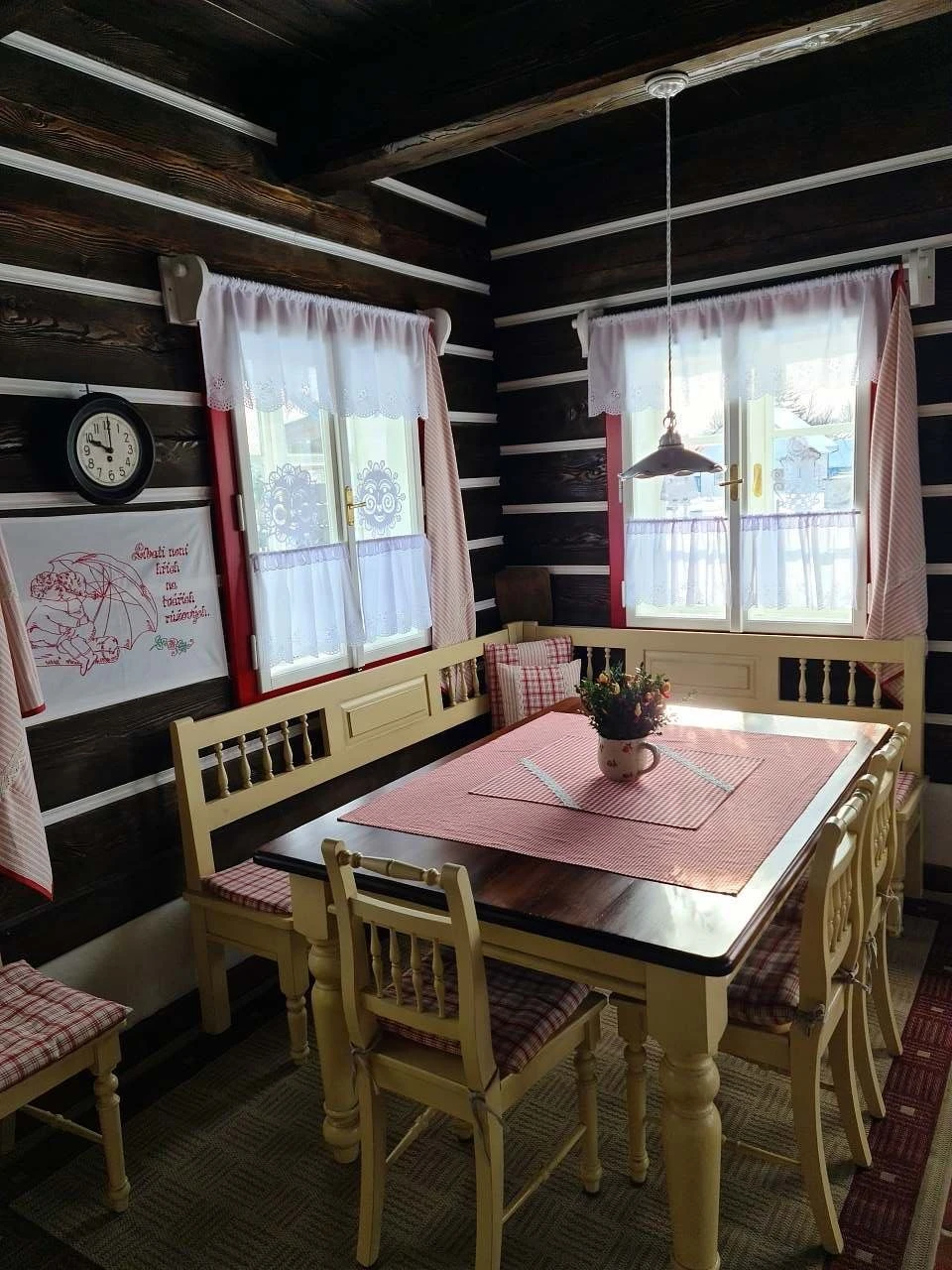 Ubytování nabízí tři samostatné pokoje a velkou obytnou kuchyň s kachlovou pecí, na které je možné i spát. Součástí kuchyně je sofa s výsuvným lůžkem (přistýlka). První pokoj je dvoulůžkový, nachází se v přízemí a je orientován na východ. Druhý pokoj je dvoulůžkový, umístěný v patře, rovněž s orientací na východ, a je propojen schody s podkrovním prostorem (hambálkem), kde se nachází dvě postele vhodné pro děti. Třetí pokoj je třílůžkový, nachází se v patře, je orientován na západ a je vybaven manželskou postelí, jednolůžkem s možností rozložení na přistýlku a malovanou skříní. Povlečení je z českého kanafasu. V interiéru jsou použity ručně malované prvky s motivem vlčích máků.