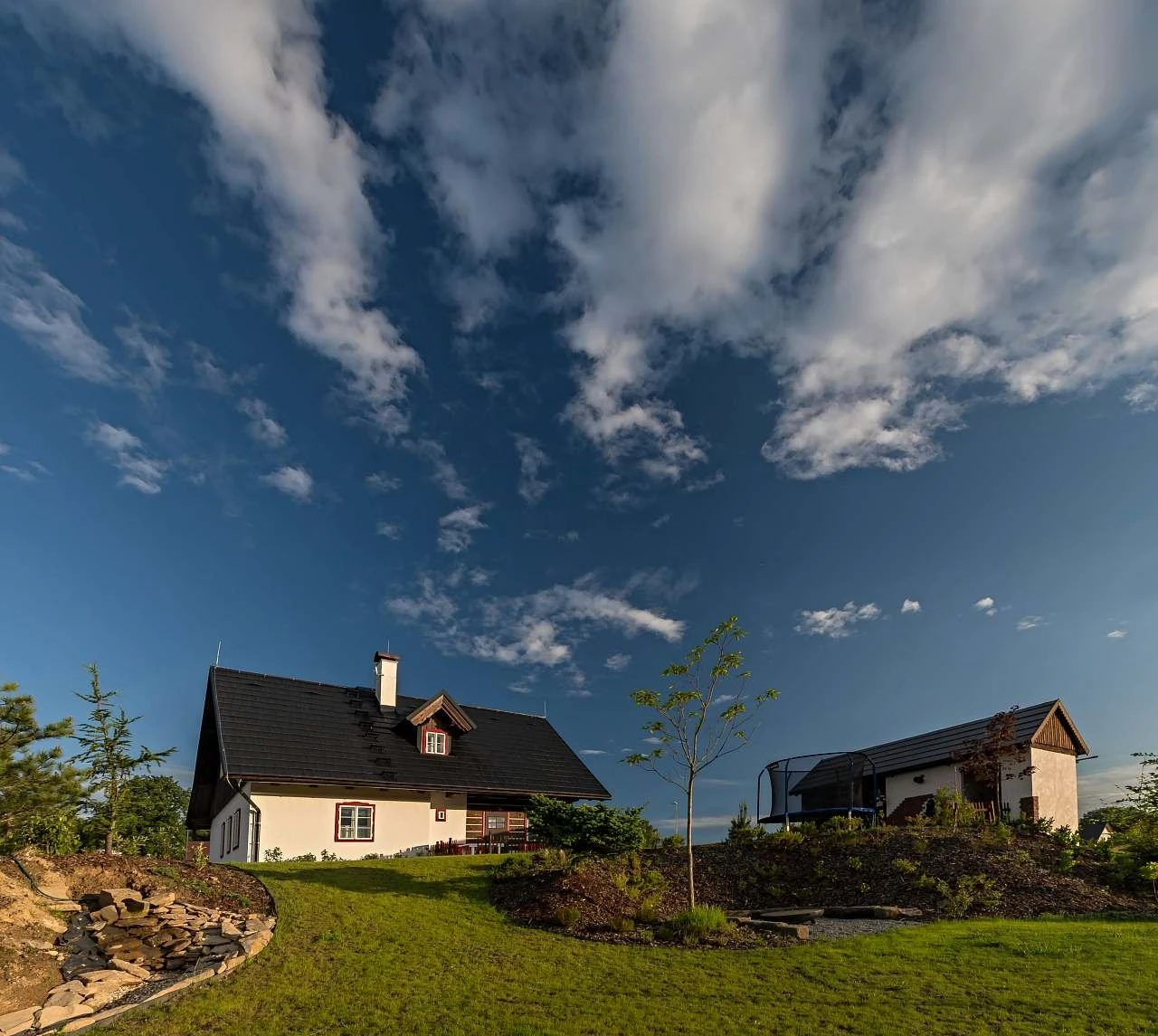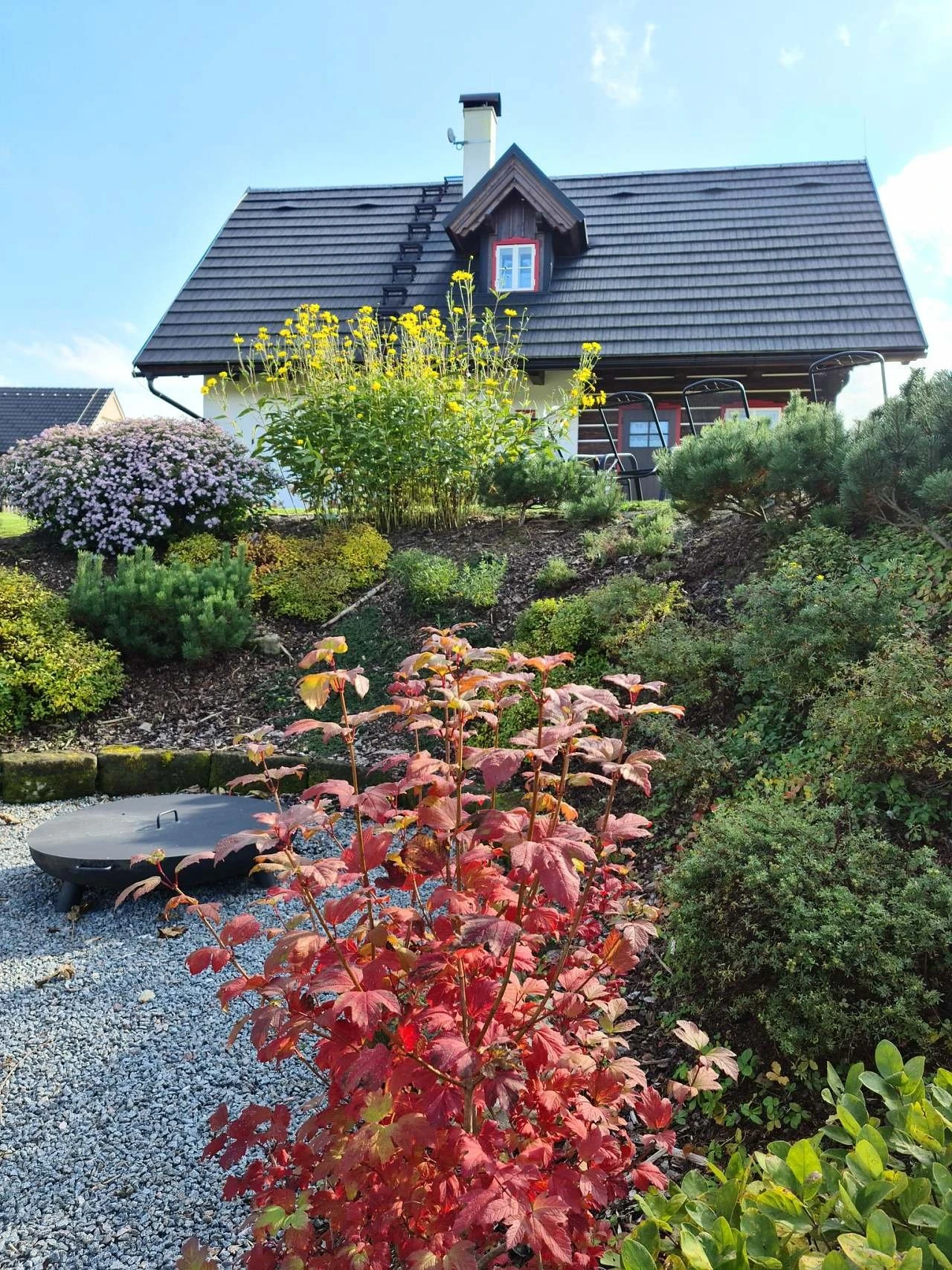 Součástí objektu je pergola s plynovým grilem a grilovacím vybavením, dále ohniště s posezením. Zahrada je k dispozici hostům a dle sezóny je možné sklízet aktuálně dozrávající plodiny.