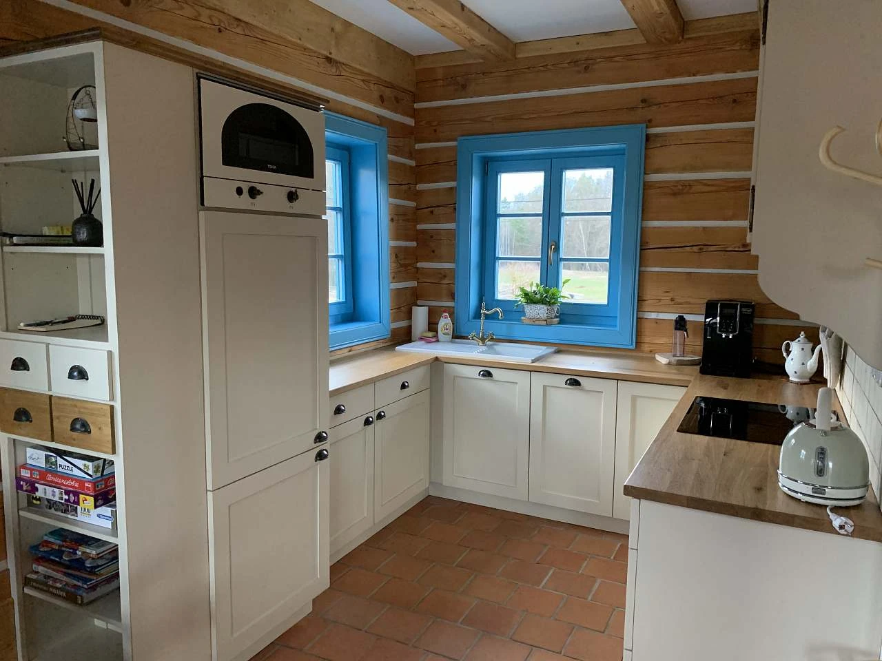 - Plně vybavená kuchyně (hrnce, příbory, skleničky, hrnečky, nádobí)
