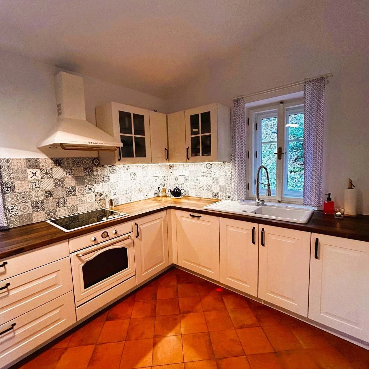 Kuchyň: K dispozici je kvalitně vybavená kuchyň se všemi potřebnými spotřebiči, včetně myčky, prostorné lednice s mrazákem, trouby, sklokeramické desky, rychlovarné konvice a dalšího kuchyňského vybavení. Nádobí je samozřejmostí, k dispozici jsou také základní potraviny, čaje a káva.