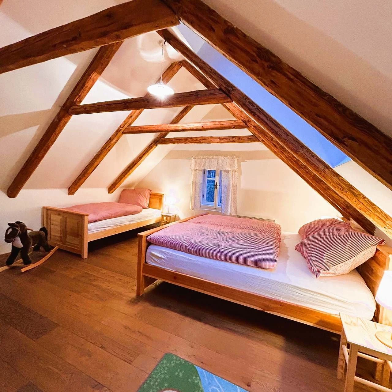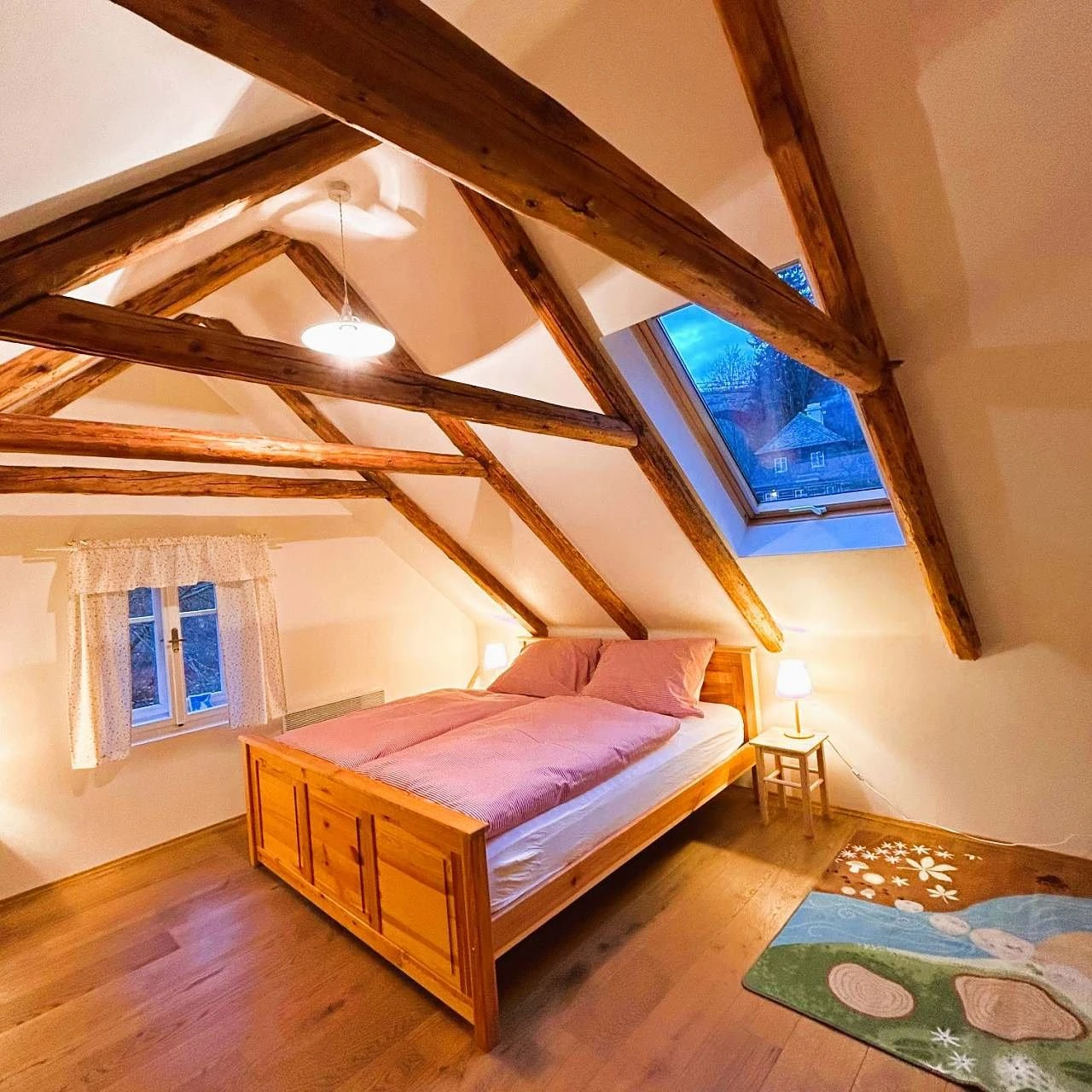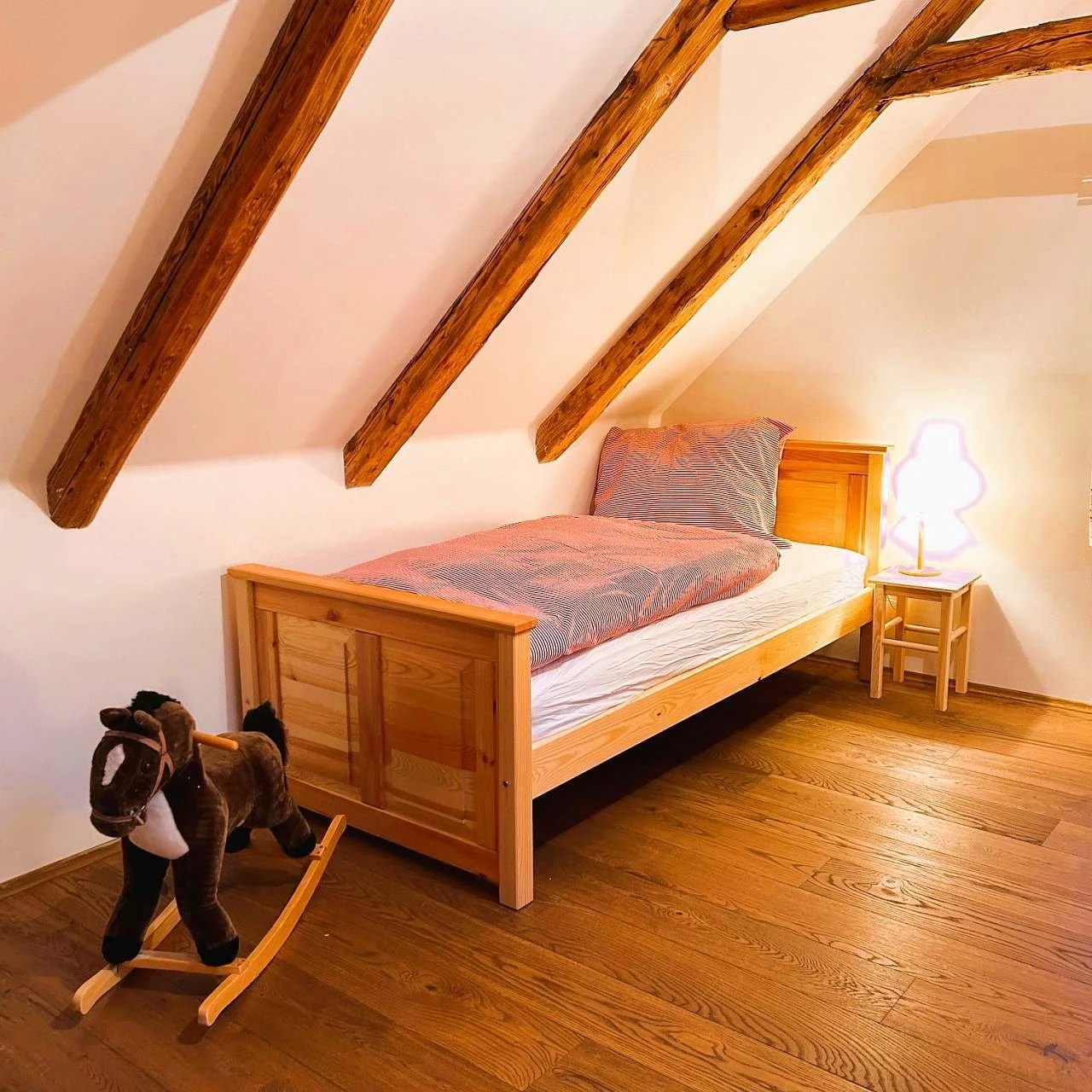 Ložnice a pokoje: Chalupa má dvoulůžkovou a třílůžkovou ložnici. K dispozici je také dětská postýlka pro miminko a rozkládací gauč pro 2 osoby, jehož pohodlnost však není garantována.