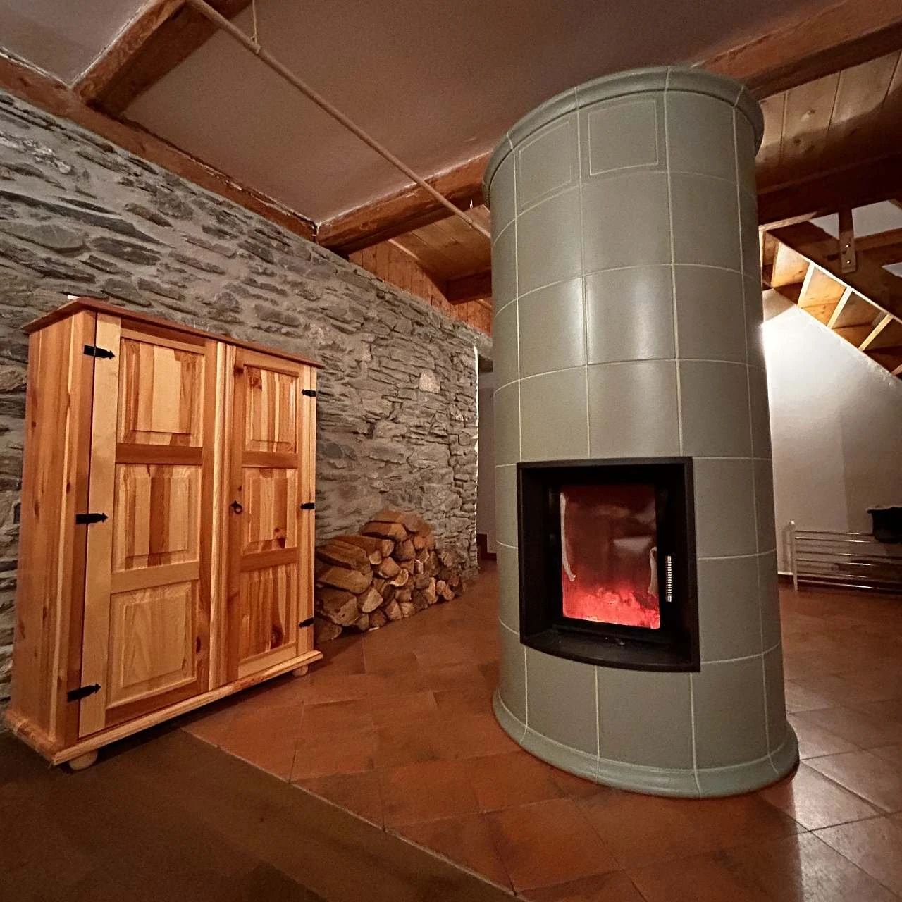 Vytápění: Chalupa je vytápěna elektrikou a dřevem.