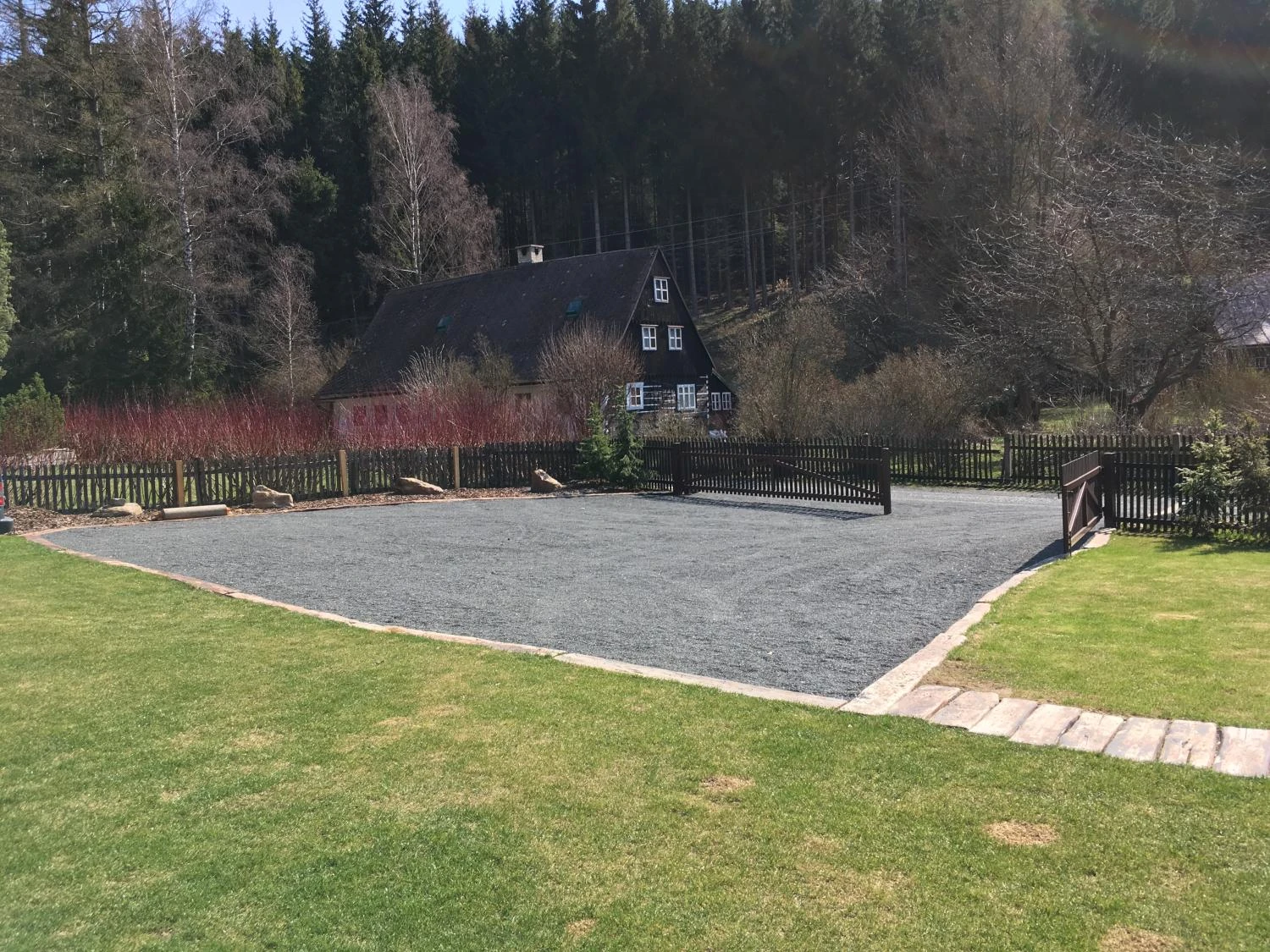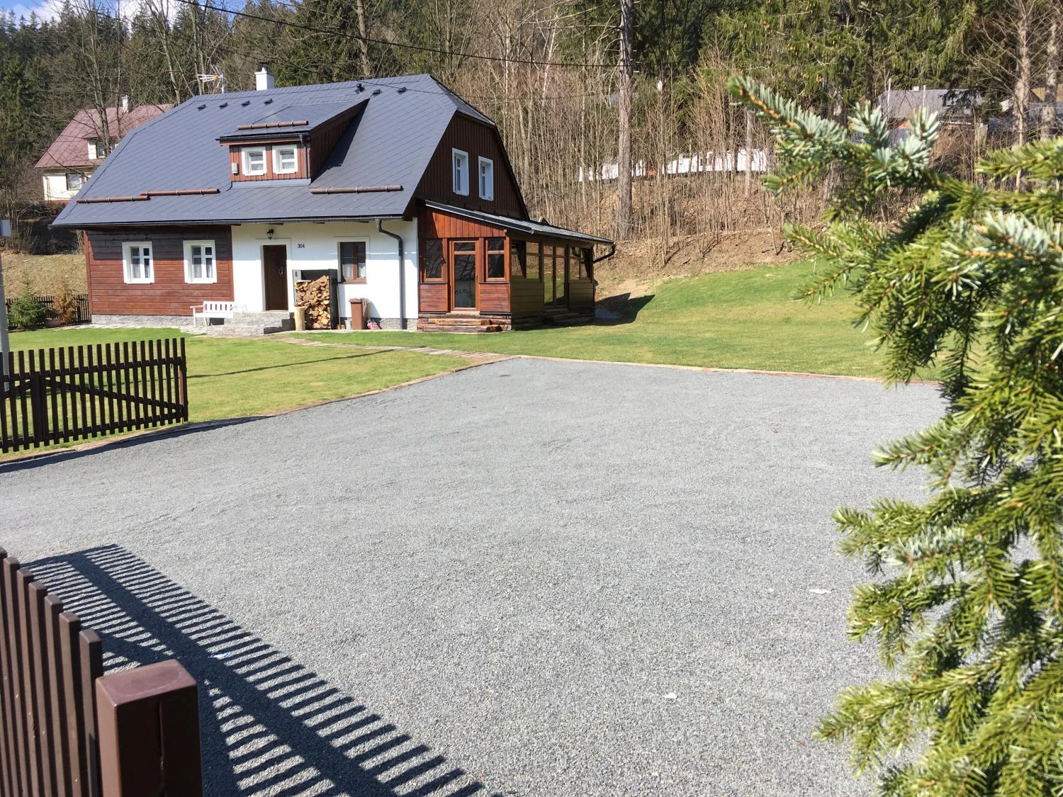 👉 oplocený pozemek + parkování
