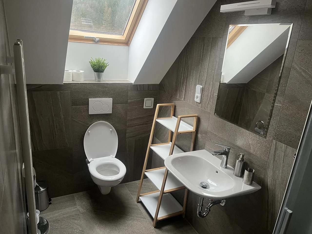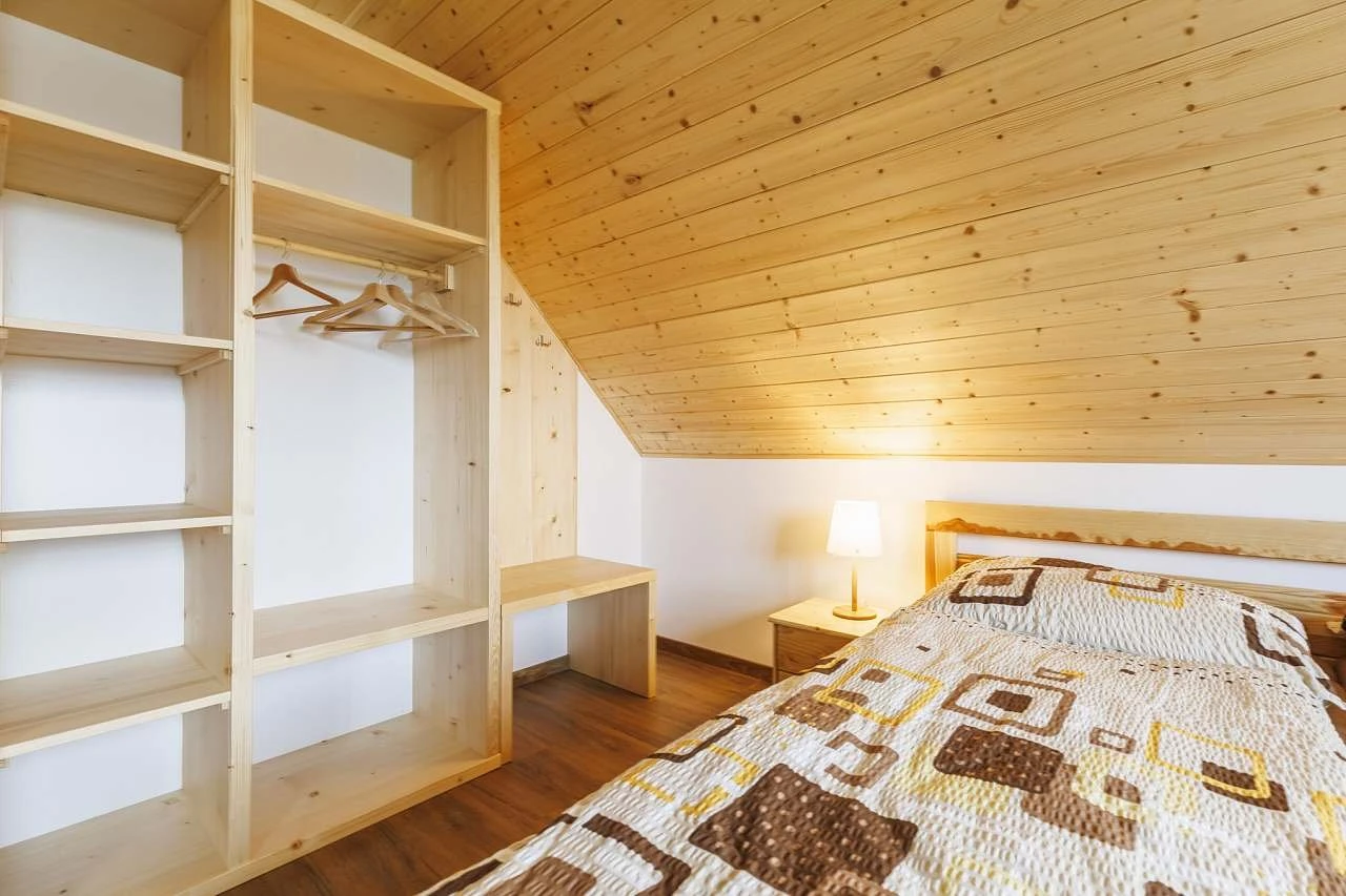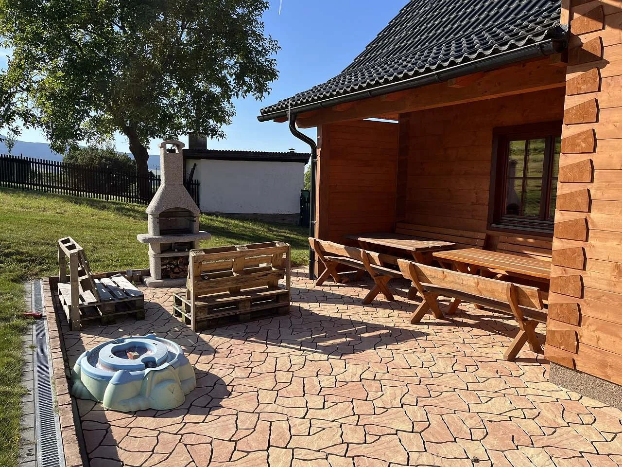 Vnitřní vybavení: krb/krbová kamna, vnitřní terasa/zimní zahrada, televize, rychlovarná konvice, mikrovlnná trouba, lednička, myčka nádobí, sprchový kout.
