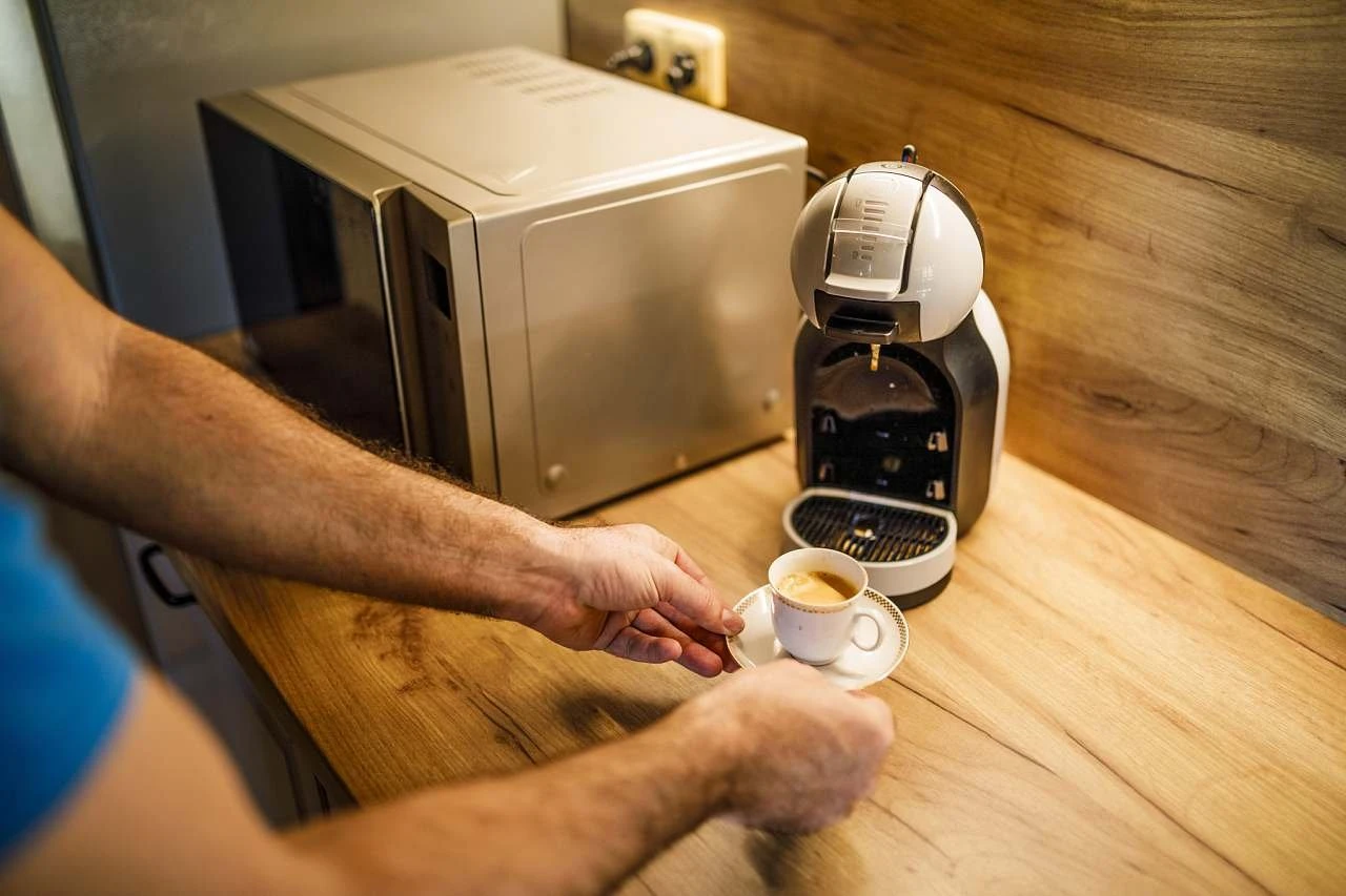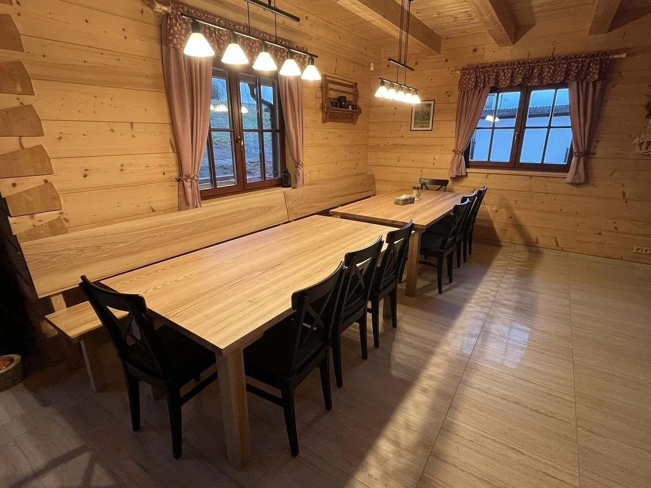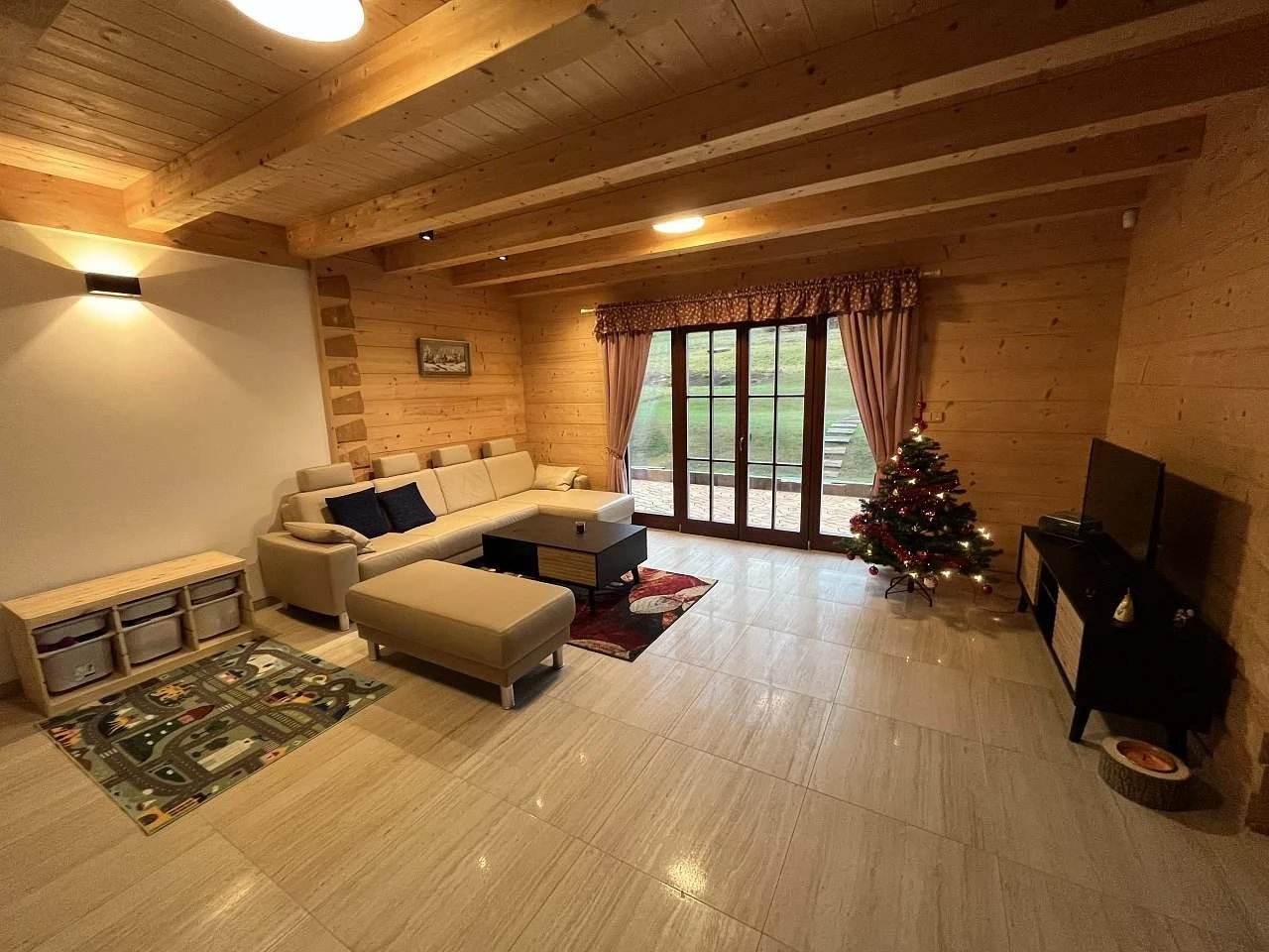 V kuchyni je indukční varná deska, horkovzdušná trouba, mikrovlnná trouba, lednička, myčka nádobí, kávovar Dolce Gusto a dostatečné množství nádobí. Jídelnu tvoří masivní stoly s dostatečným počtem míst k sezení. V obývacím pokoji je sedací souprava, LCD televize, DVD, WiFi, krbová kamna a dětský koutek s hrami. Z obývacího pokoje je vstup na venkovní zastřešenou terasu.