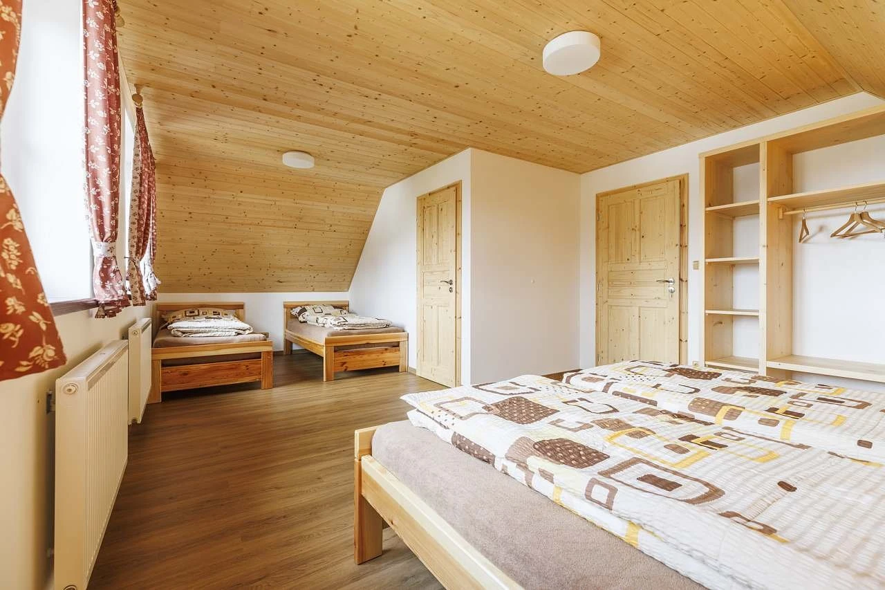 Roubenka Orlice nabízí ubytování pro 2 až 13 osob ve 3 ložnicích, každá s vlastní koupelnou a WC. Ložnice mají manželskou postel a další samostatná lůžka (rozložení 4 + 4 + 5 osob). Objekt má celkem 3 koupelny s WC a jedno samostatné WC ve spodním patře. Celá chalupa je vytápěna tepelným čerpadlem, v dolní části je podlahové topení, v horních pokojích radiátory. U chalupy je parkoviště přímo u objektu.