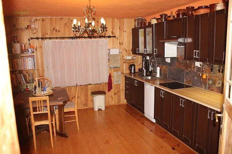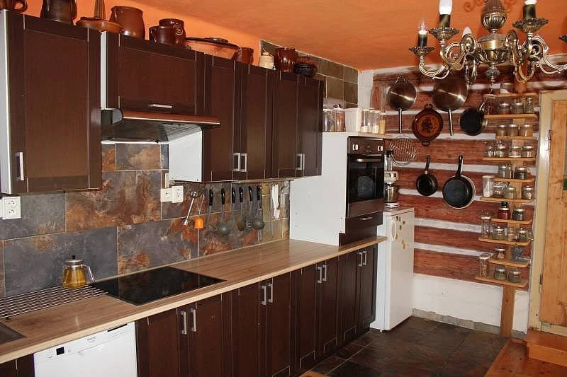 - Studená i teplá voda je zavedena do koupelny i kuchyně