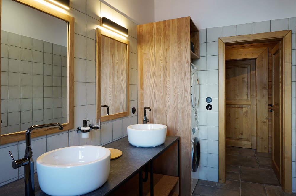 Roubenka disponuje více ložnicemi s manželskými postelemi, přičemž ke každé ložnici náleží vlastní koupelna se sprchovým koutem. V přízemí se nachází další koupelna s vanou. Hostům je k dispozici pračka a sušička.