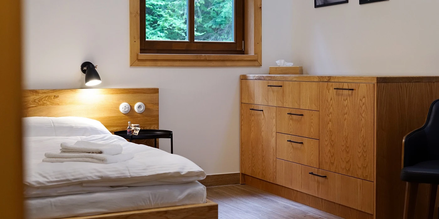 Dolní roubenka je postavena tradičním způsobem z místního jedlového dřeva a je plně přizpůsobena pro pohodlné ubytování rodin i větších skupin. Objekt kombinuje klasickou roubenou stavbu s moderním technickým zázemím.