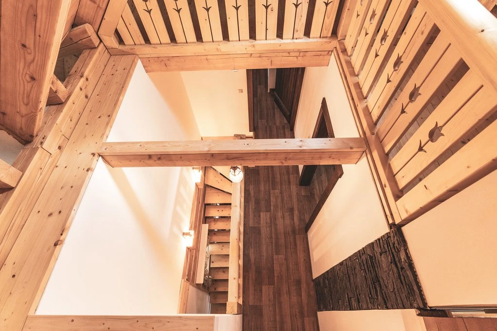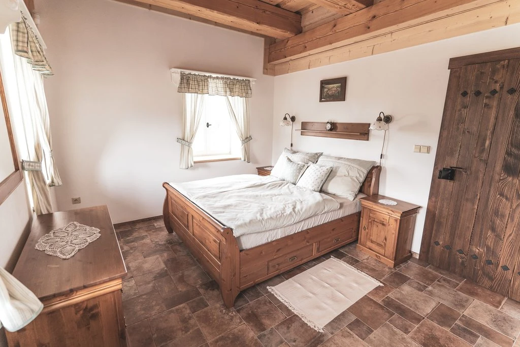 Ubytování nabízí čtyři samostatné ložnice, každá s manželskou postelí, úložnými prostory a nočními stolky s lampičkami. Pro rodiny s dětmi je k dispozici dětský koutek s hračkami a dětská postýlka. V každé roubence se nachází dvě koupelny a tři toalety, z toho dvě samostatné.