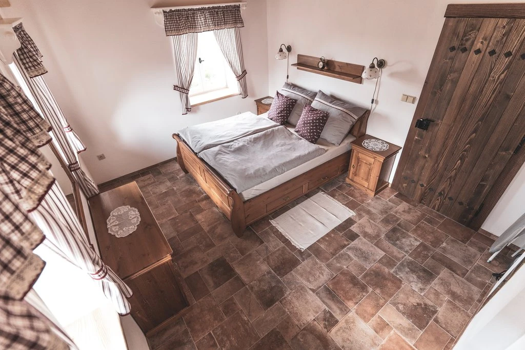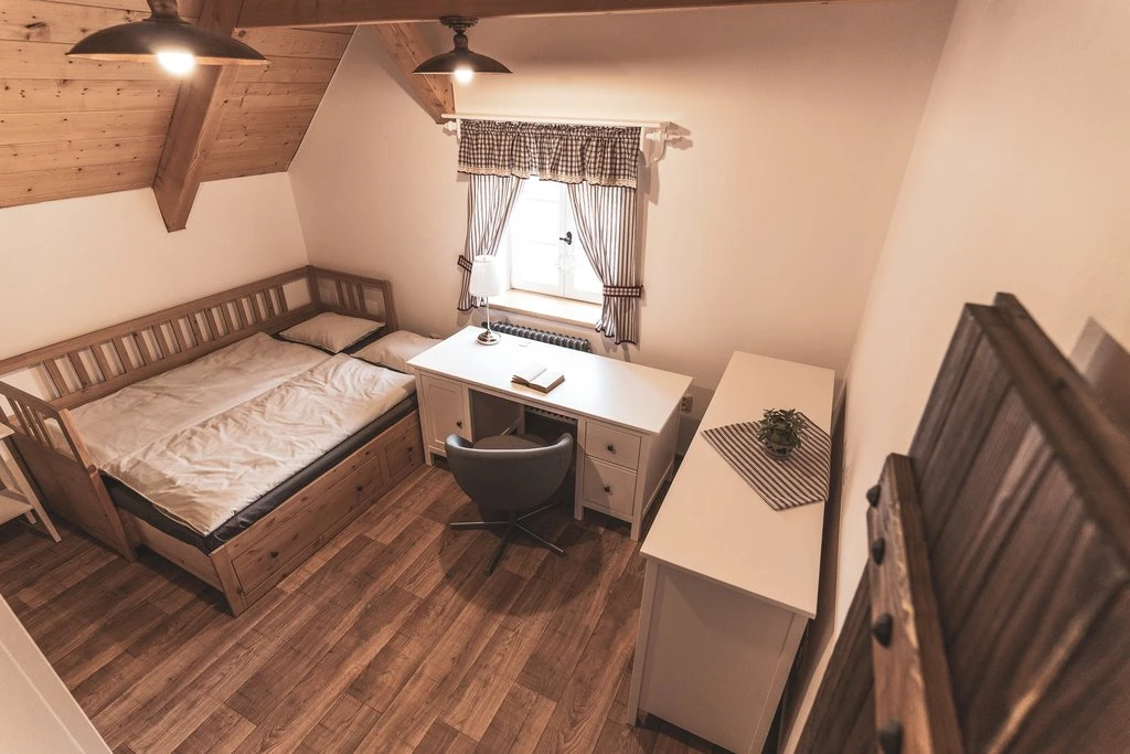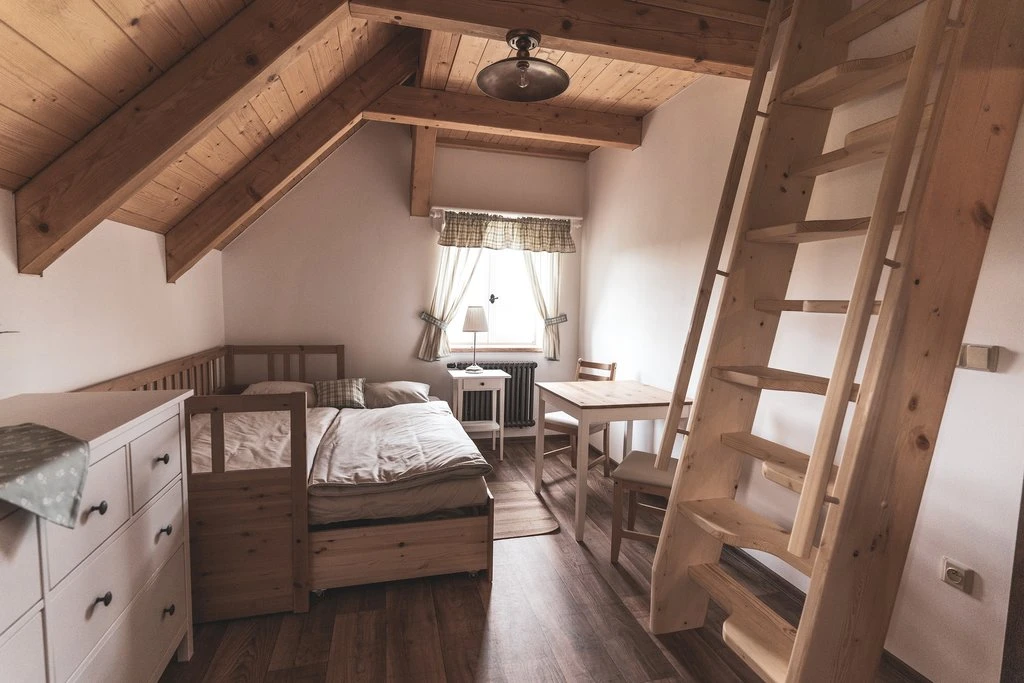 8 lůžek4 ložnice2 koupelny, 3 toaletyLožnice 1:1× Manželská postelLožnice 2:1× Manželská postelLožnice 3:1× Manželská postelLožnice 4:1× Manželská postelVybaveníInternet WiFi, Televize, Dětská postýlka, Soukromý vchod do budovyKoupelna s toaletouToaleta, Sprcha, Umyvadlo, RučníkyKoupelna bez toaletyVana, Ručníky, Umyvadlo2× Samostatná toaletaToaletaObývací místnostKrb / Kamna, Pohovka, Společenské hry, Televize, Jídelní sezeníKuchyňský koutElektrická trouba, Keramická varná deska, Mikrovlnná trouba, Rychlovarná konvice, Lednička, Mraznička, Kávovar, Topinkovač, Myčka nádobí