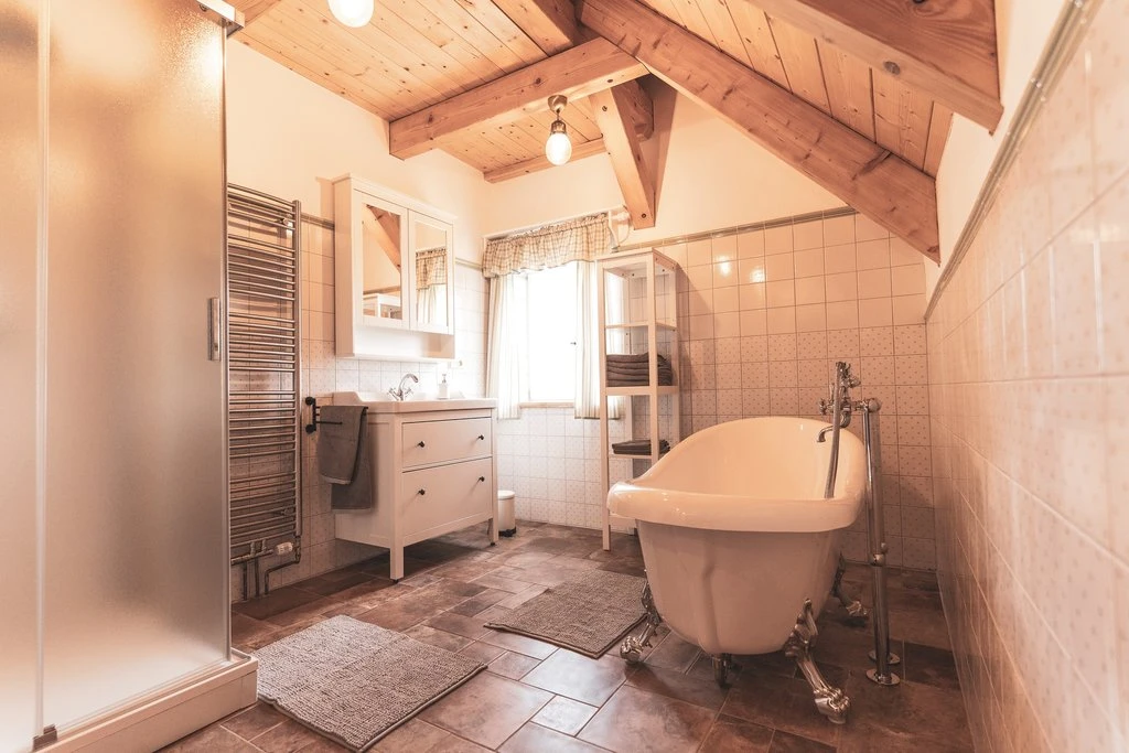 - Koupelna bez toalety: vana, umyvadlo, ručníky