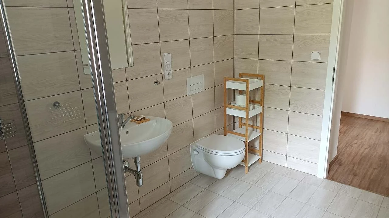 pětilůžkový apartmán – ložnice s manželskou postelí, samostatnou postelí a rozkládací pohovkou s dvěma lůžky v obývací kuchyni. V rámci apartmánu je sociální zařízení se sprchovým koutem. Toaleta je součástí koupelny. Apartmán je bezbariérový.
