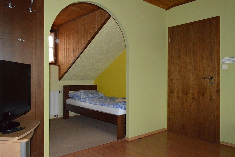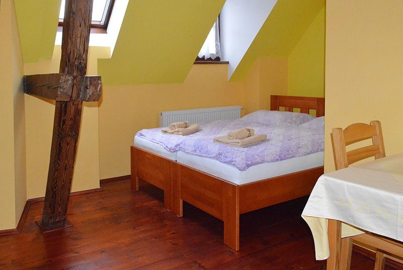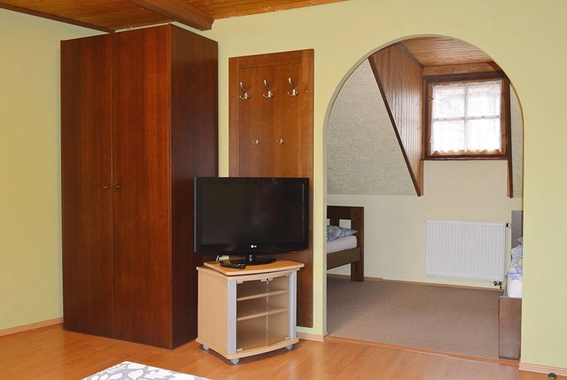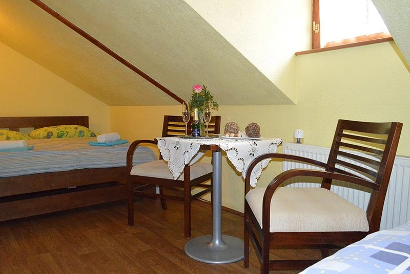Rustikální prostředí Vás pohltí a snadněji si odpočinete a z relaxujete v třílůžkovém pokoji, který je ideální pro rodinu s jedním dítětem.