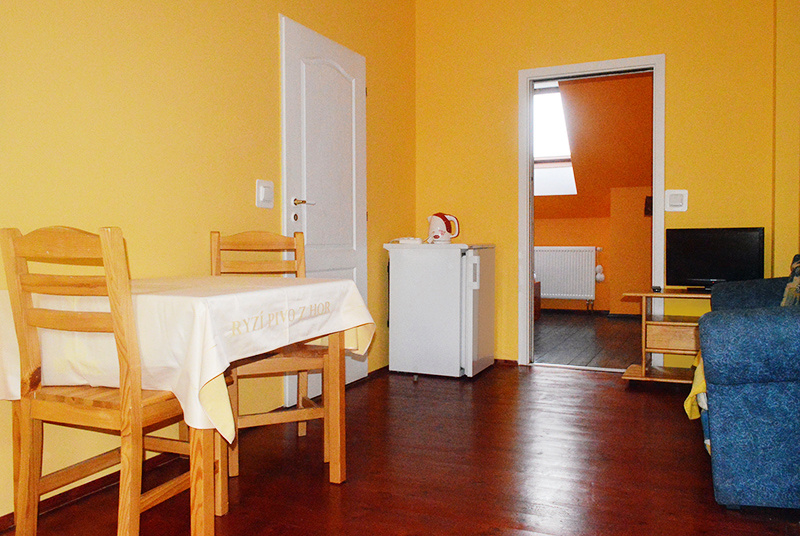 Čtyřlůžkový apartmán náš největší pokoj . Ideální pro rodinu s dětmi. Pokoj má oddělenou ložnici.