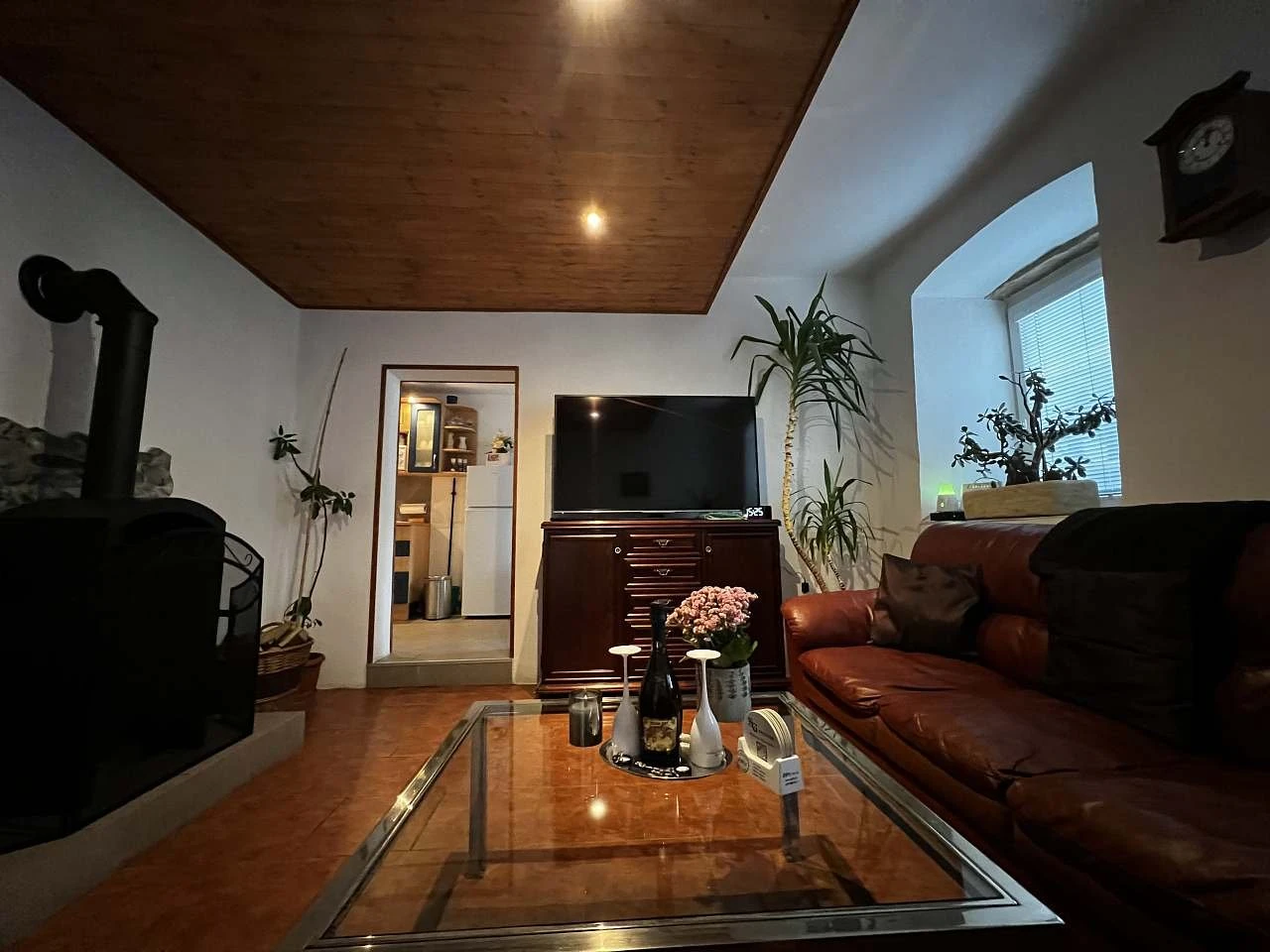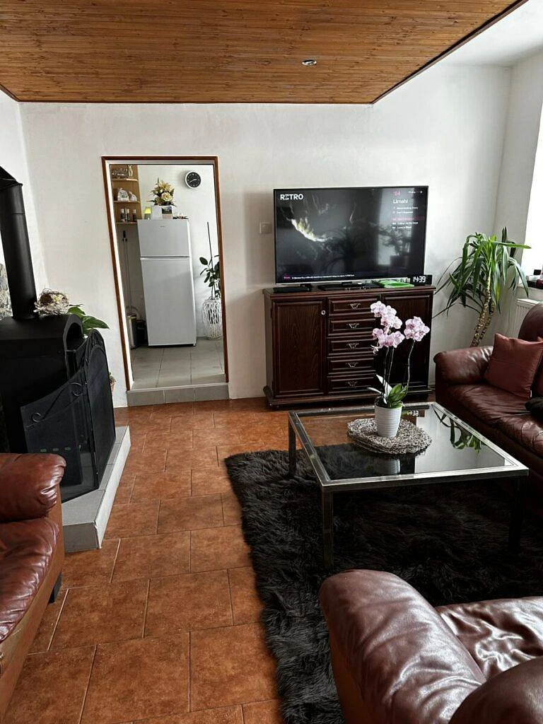 Obývací pokoj je vybaven pohodlnou sedací soupravou, krbovými kamny, TV a Wi-Fi. Chalupa má plynové centrální topení a krbová kamna.