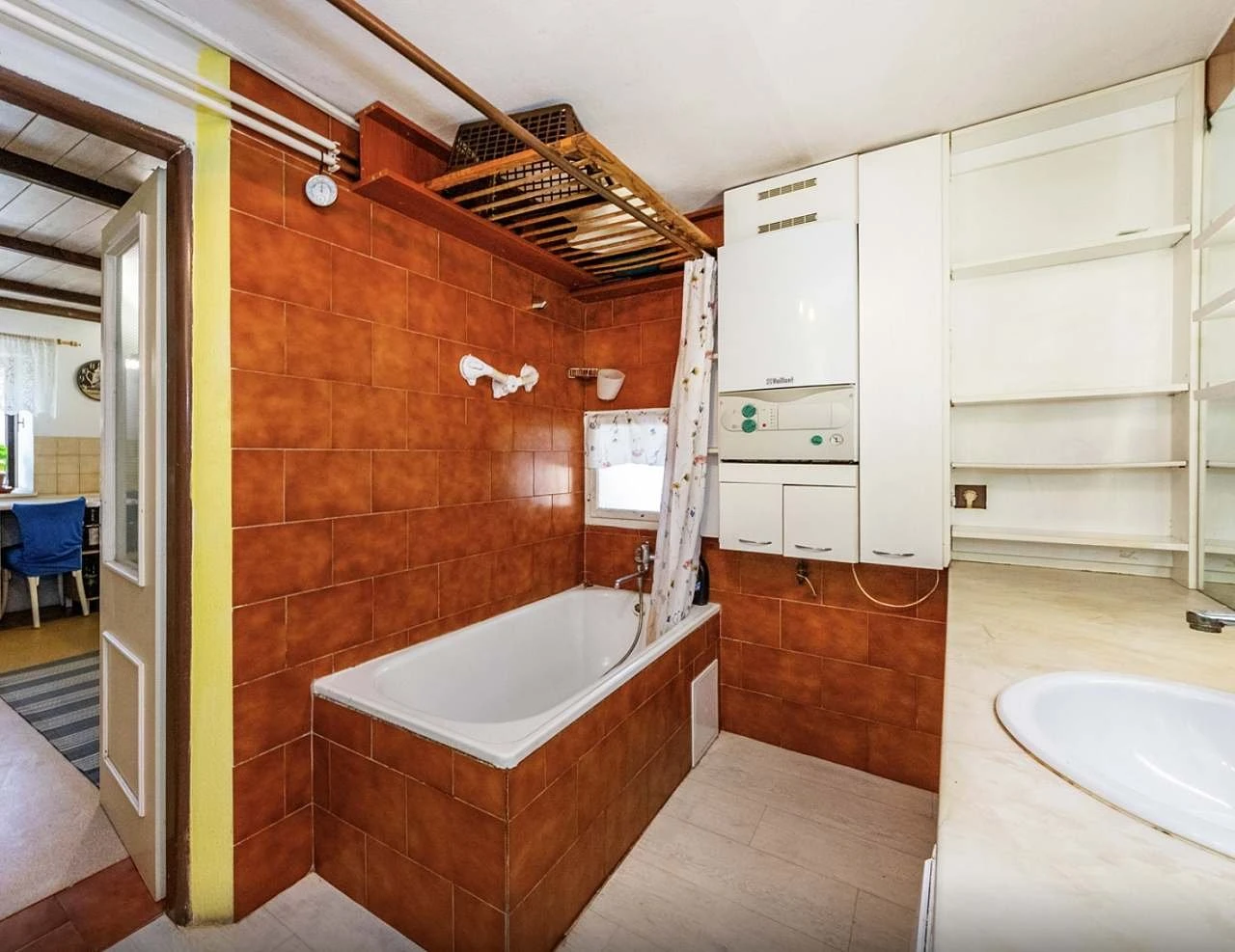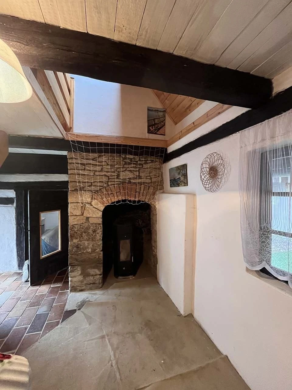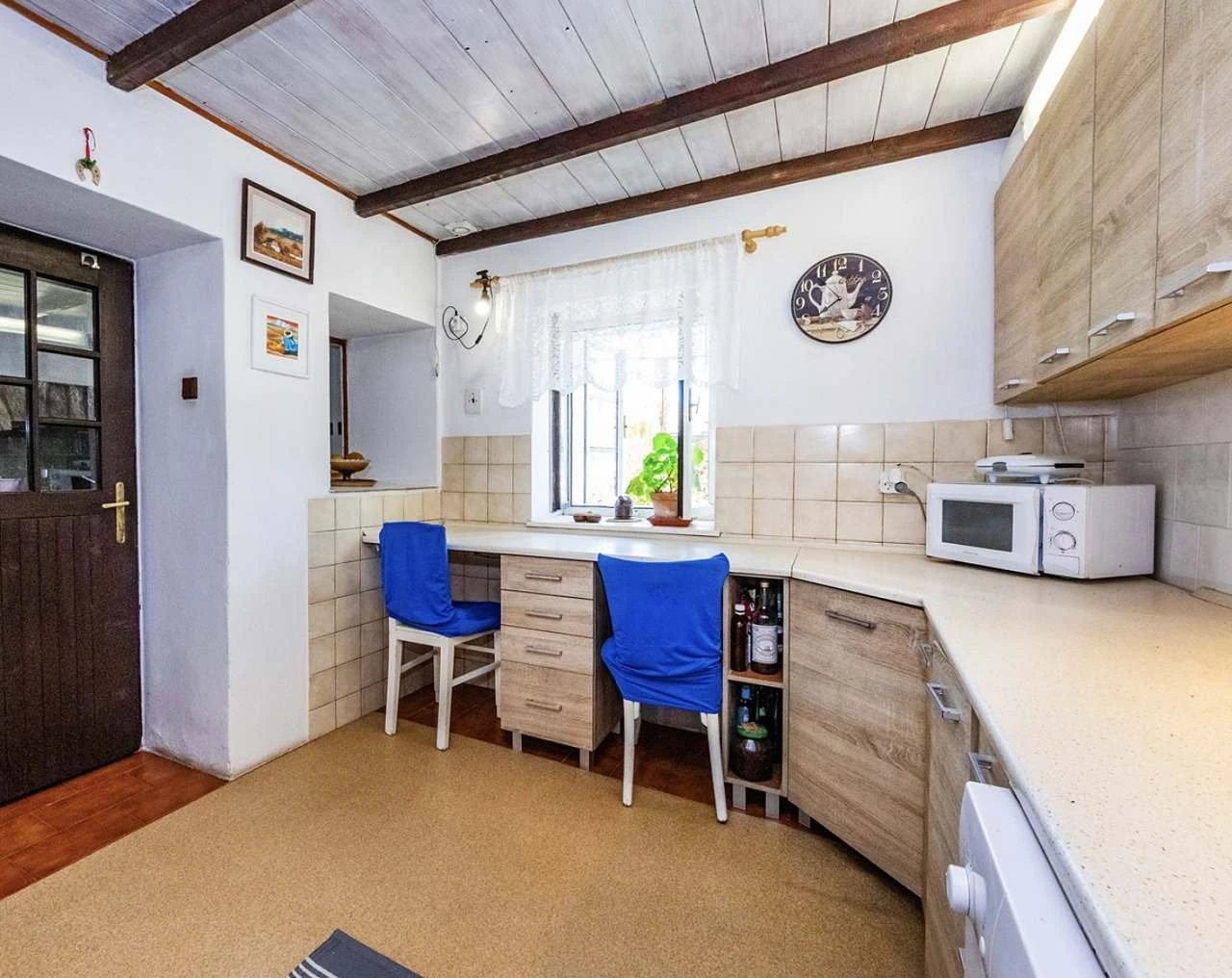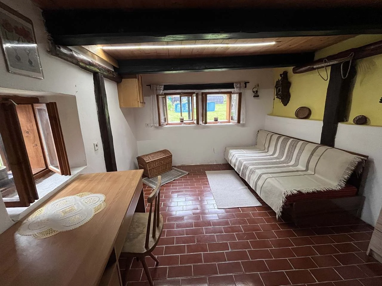 - Dole: plně vybavená kuchyň, koupelna s WC, ložnice s pecí, předsíň