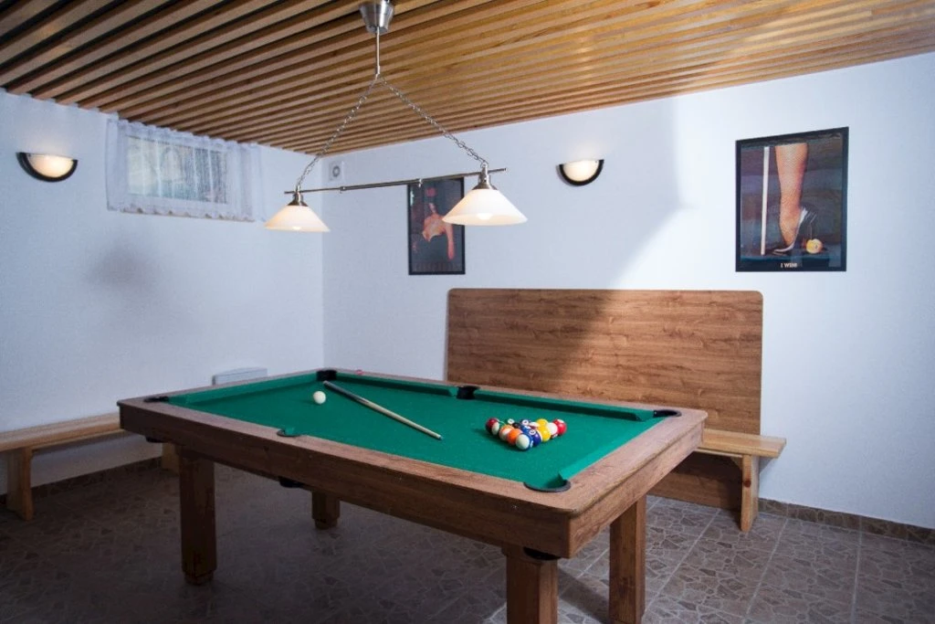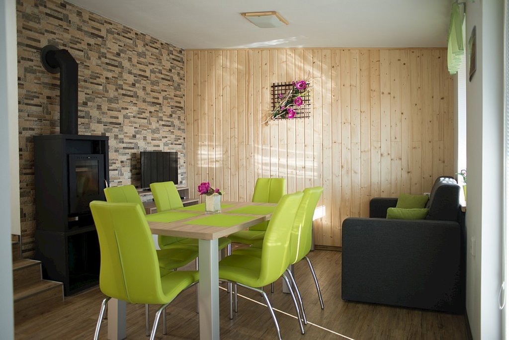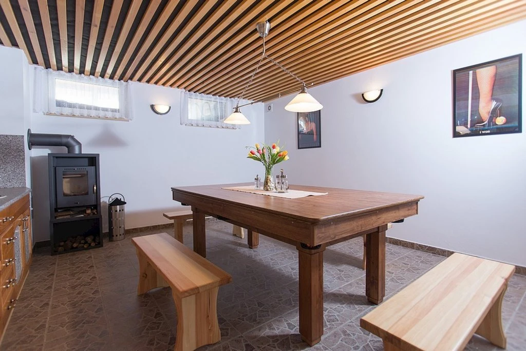 - Vybavení interiéru: WiFi, televize se satelitem, DVD přehrávač, krb/kamna, společenské hry, jídelní sezení
