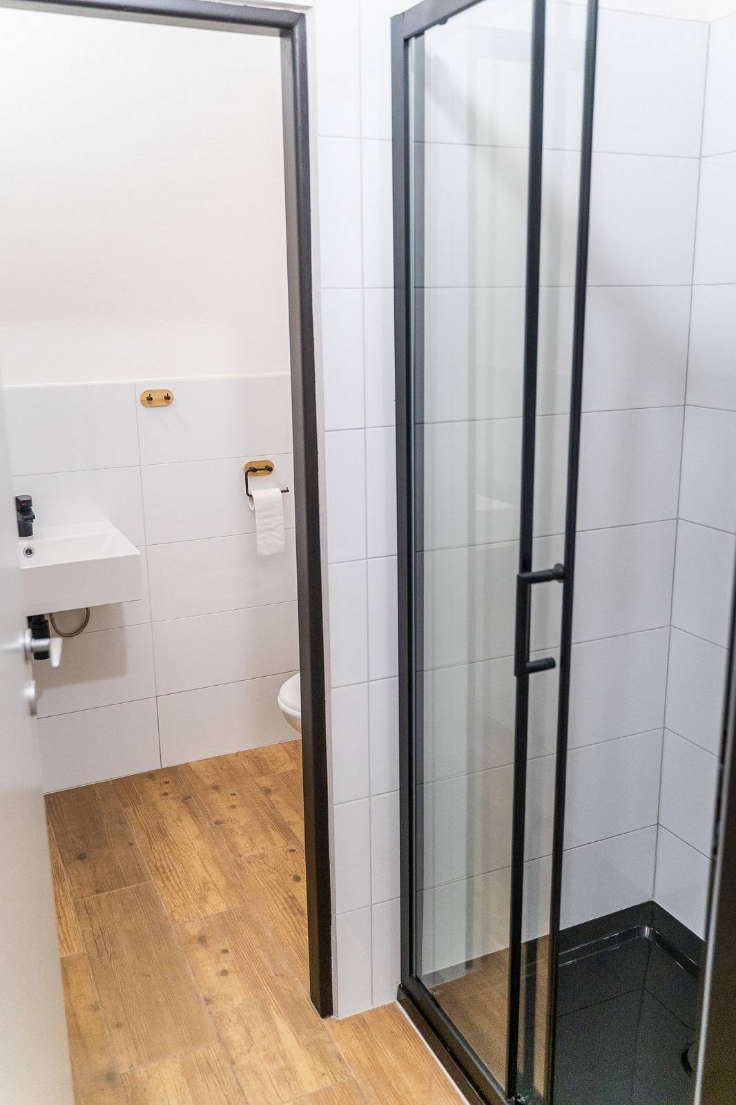 - sdílená koupelna s toaletou, sprchovým koutem a pračkou