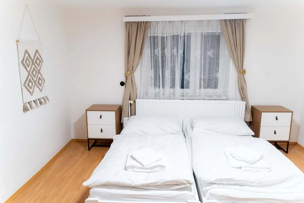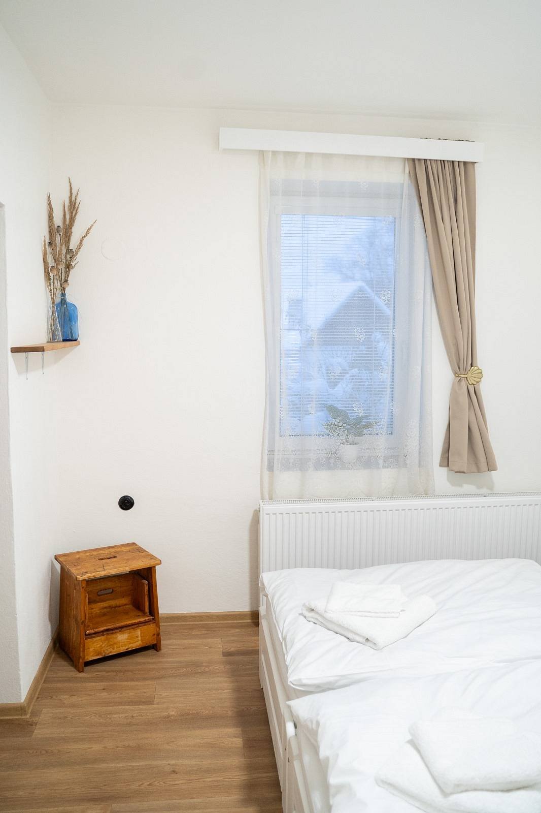 pokoj pro 2 osoby- sdílená koupelna s toaletou, sprchovým koutem a pračkou- pokoj se nachází v klidném prvním patře, přístup po schodech