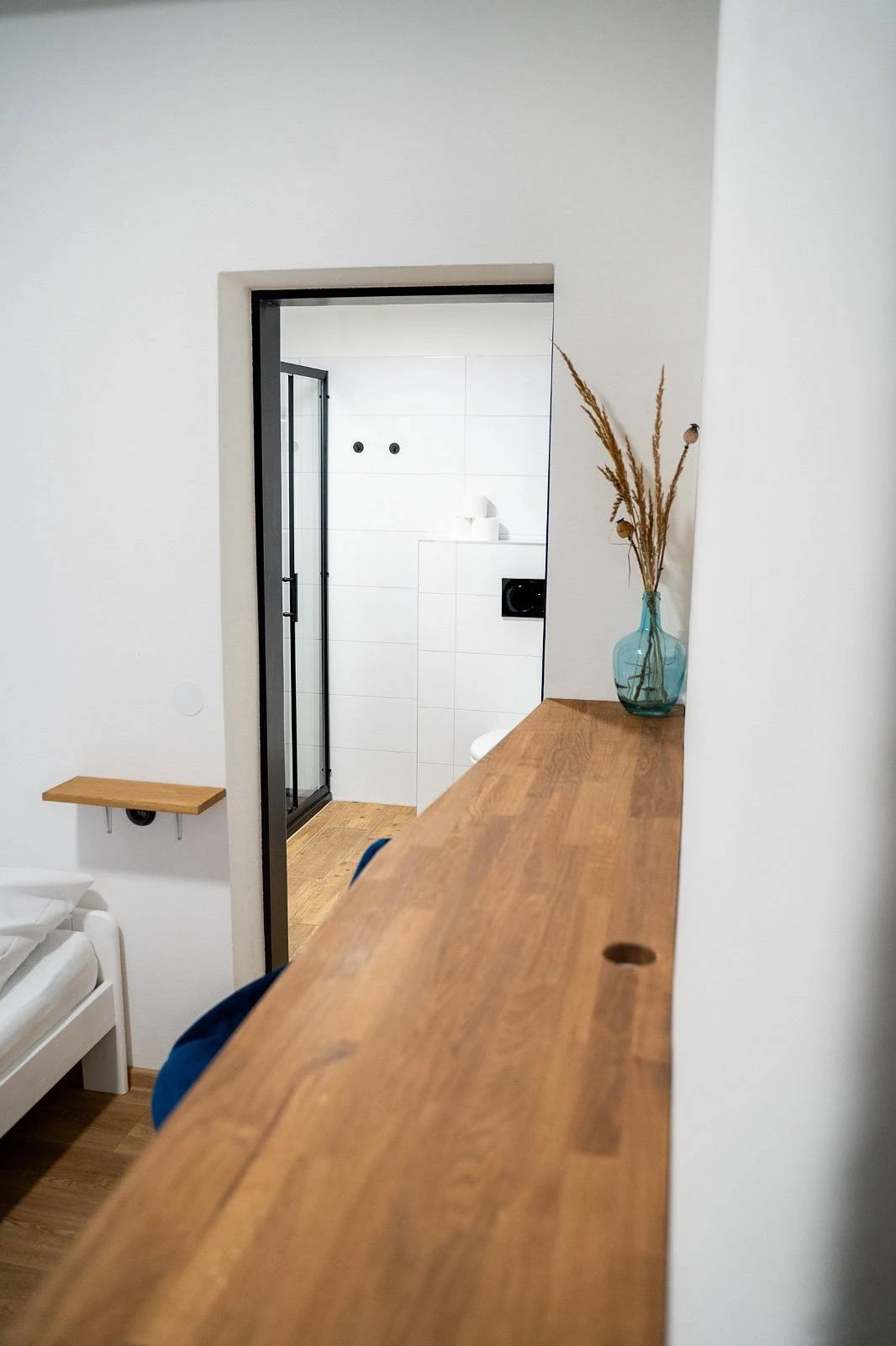 Apartmán č. 1- pokoj pro 2 osoby- pracovní bar - vlastní koupelna s toaletou a sprchovým koutem- vlastní přístup do spodní části zahrady
