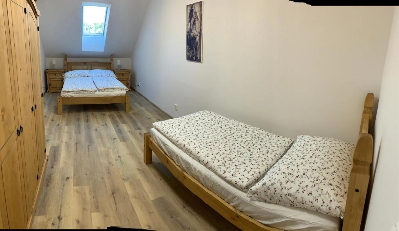 - Apartmán č. 1 – 1 ložnice s manželskou postelí, dvěma samostatnými postelemi a menší rozkládací postelí.