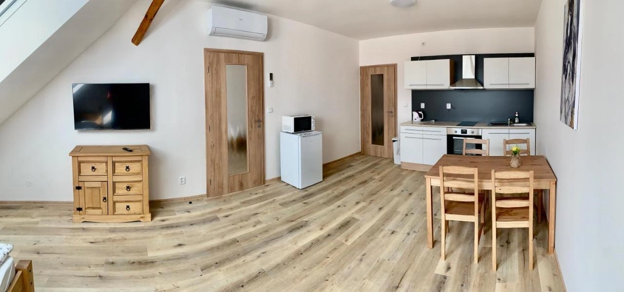 Vybavení apartmánů: kuchyňský kout, jídelní posezení, televize, koupelna se sprchovým koutem a toaletou. WiFi je k dispozici v celém objektu.