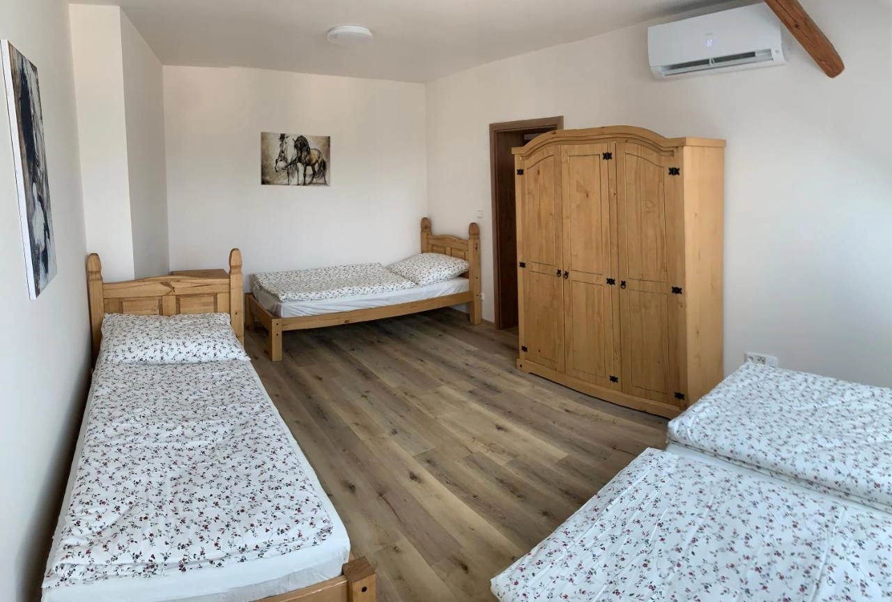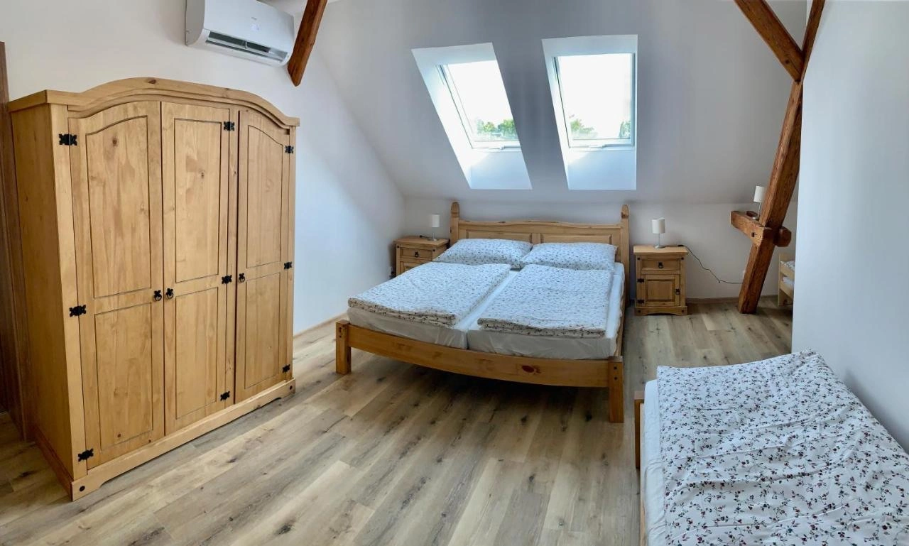 - Ložnice: 1 (manželská postel + 2 jednolůžka + rozkládací přistýlka)