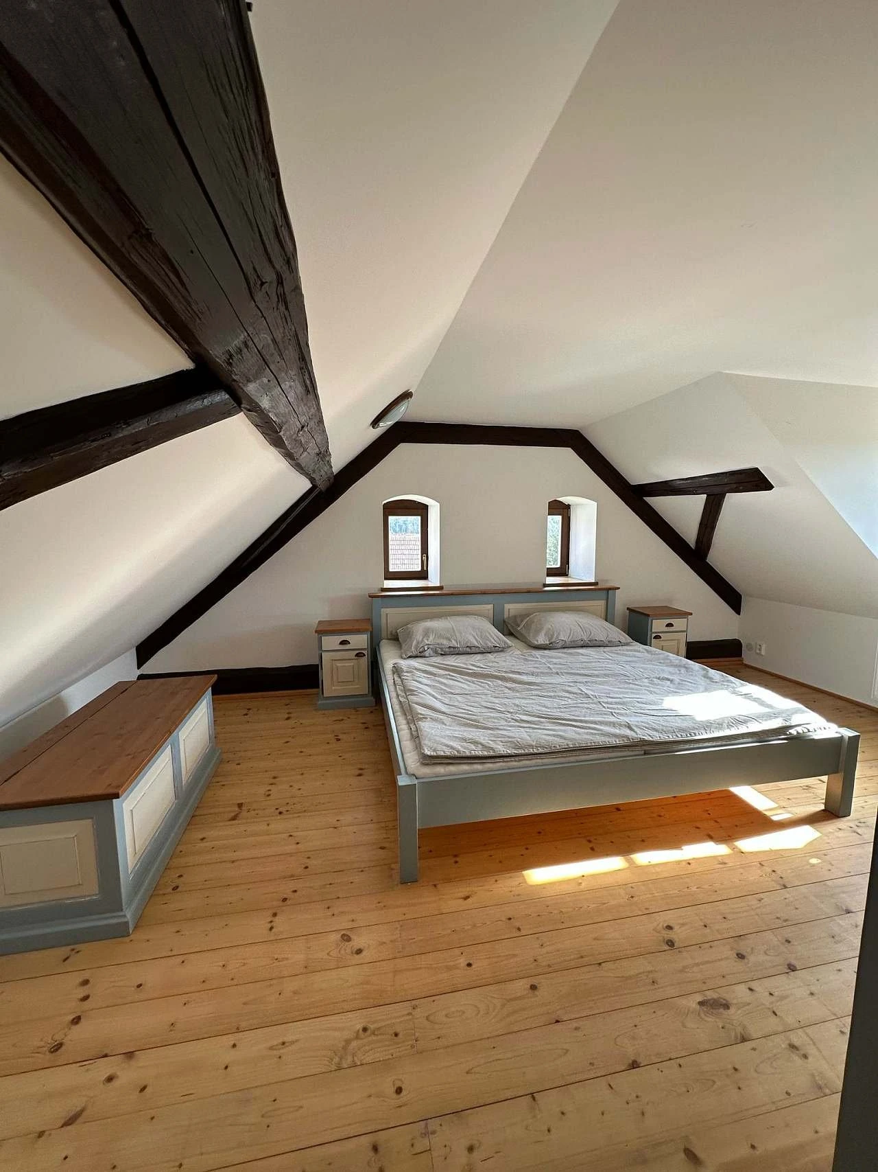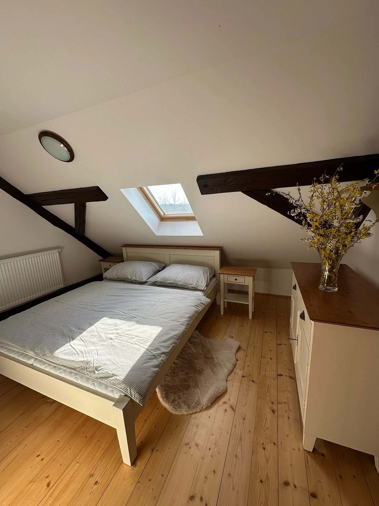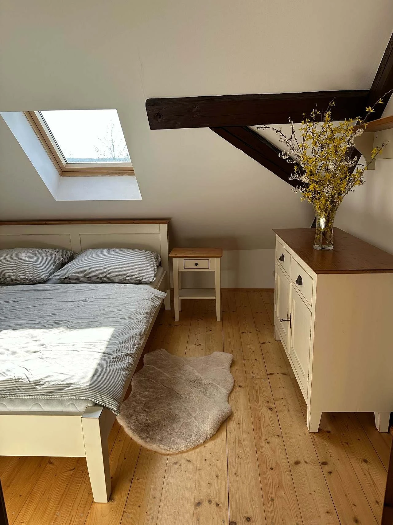 Statek nad Střelou v Dolním Hradišti nabízí ubytování pro až 10 osob ve 4 samostatných ložnicích.