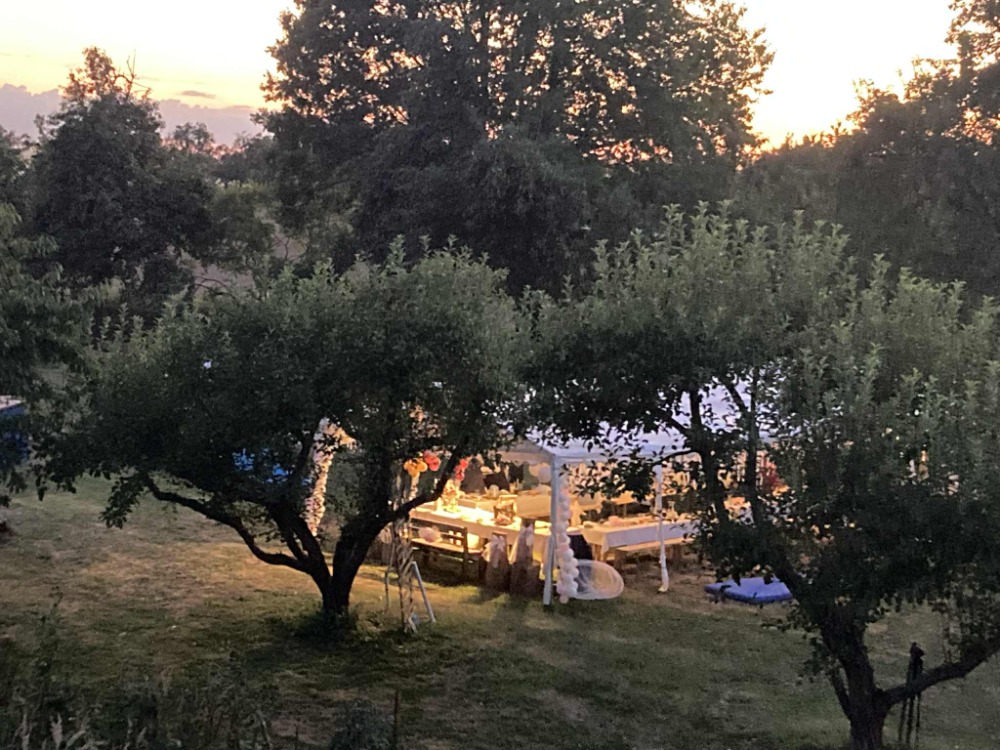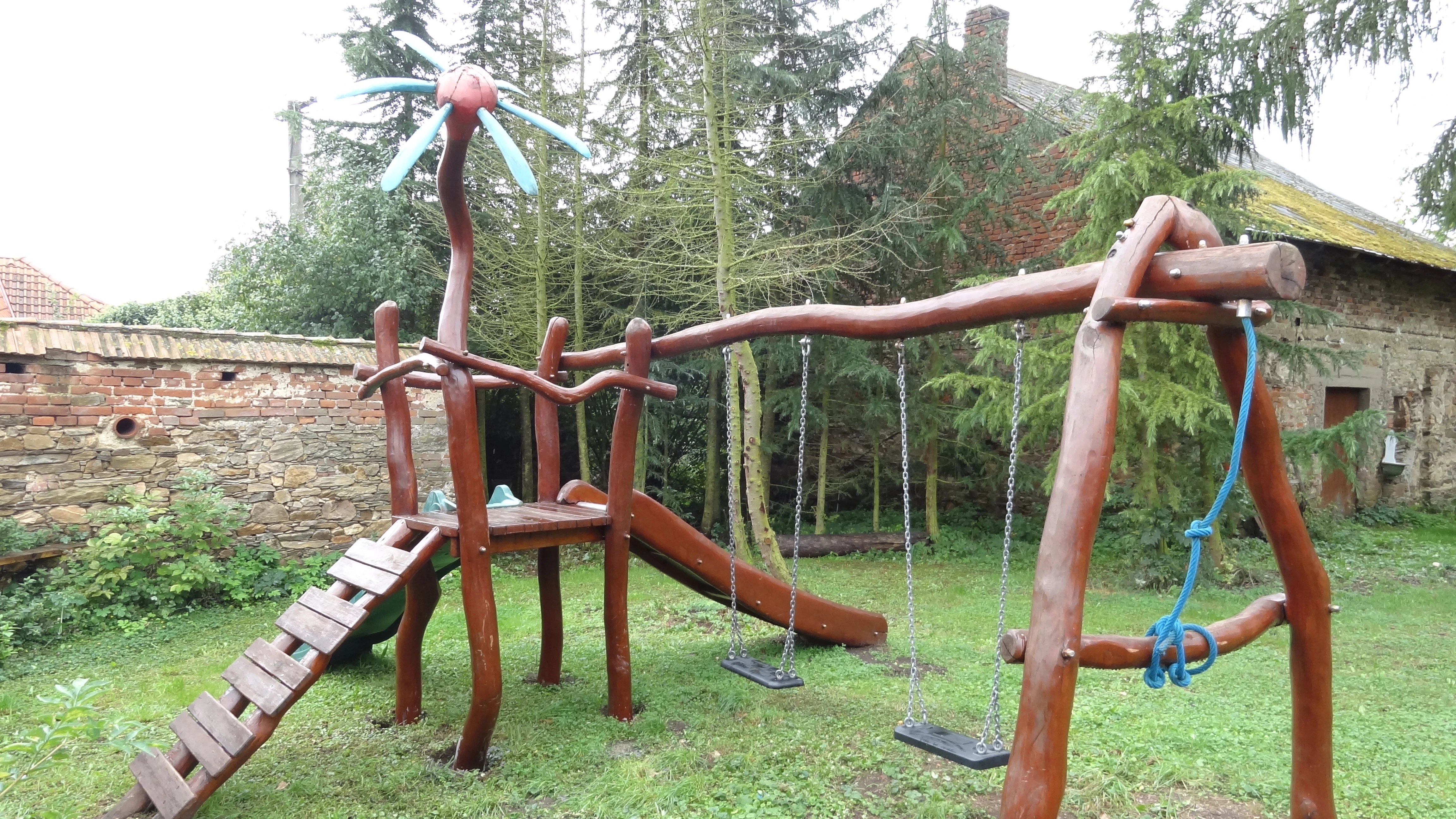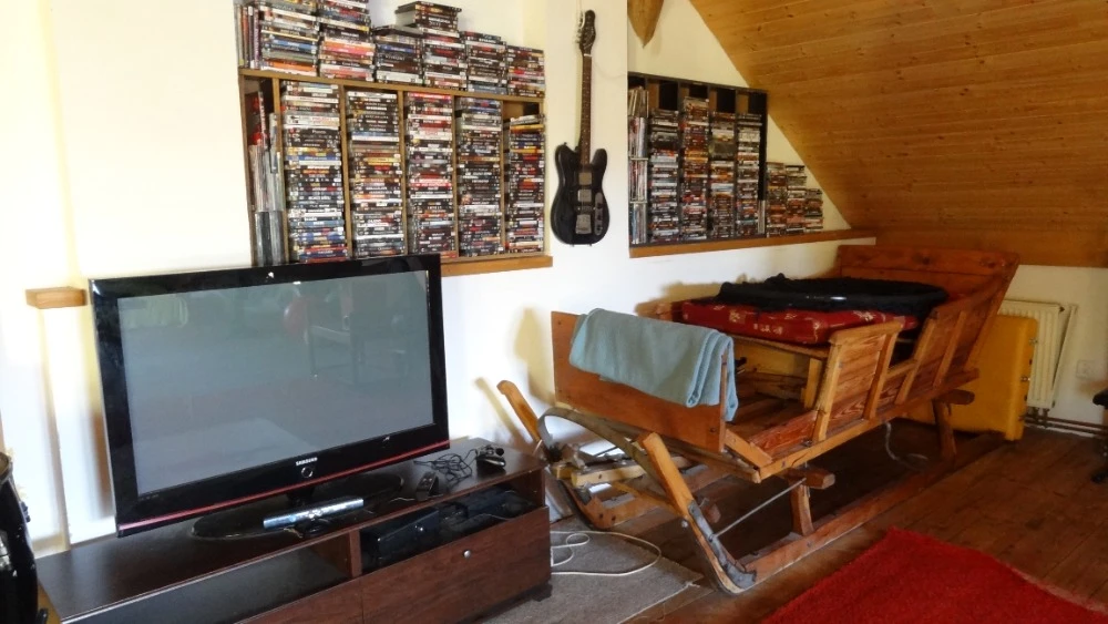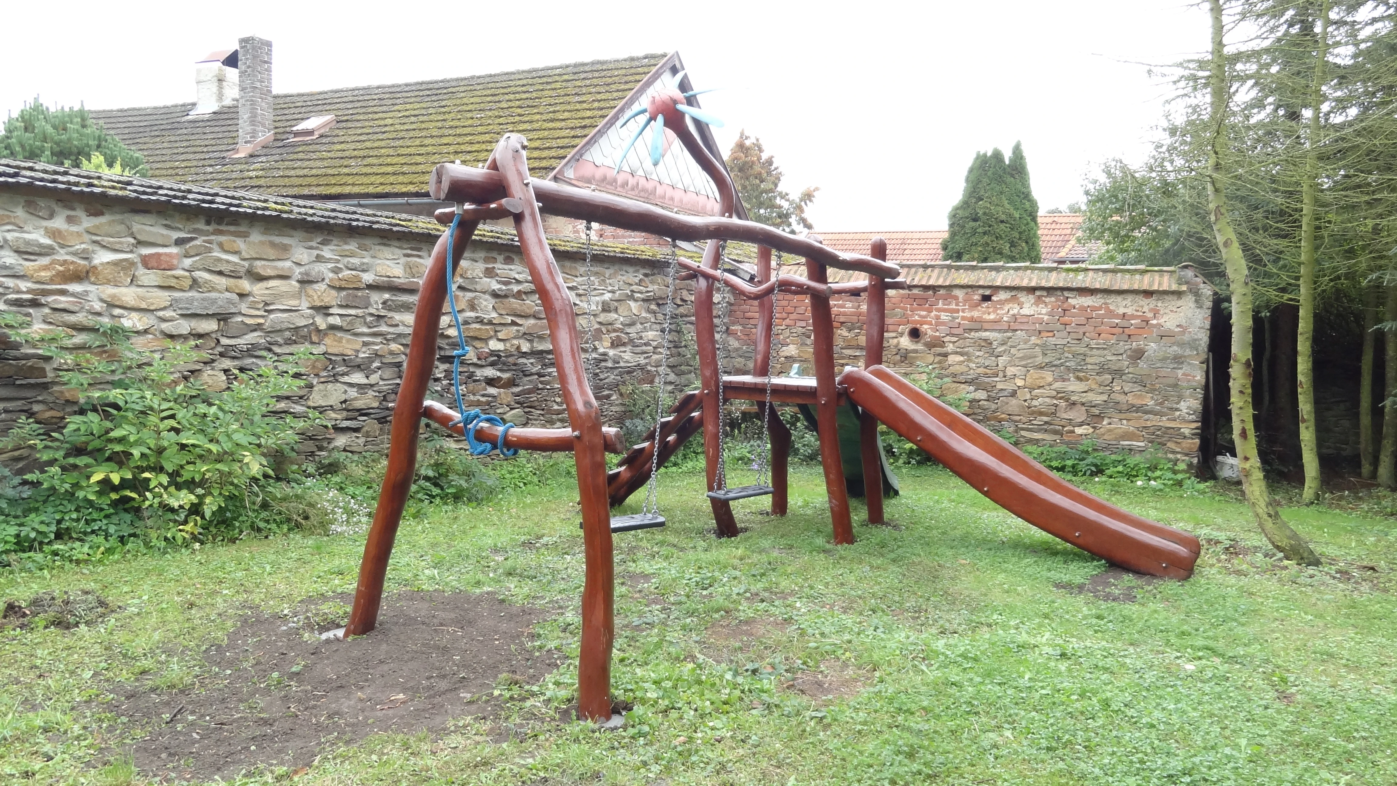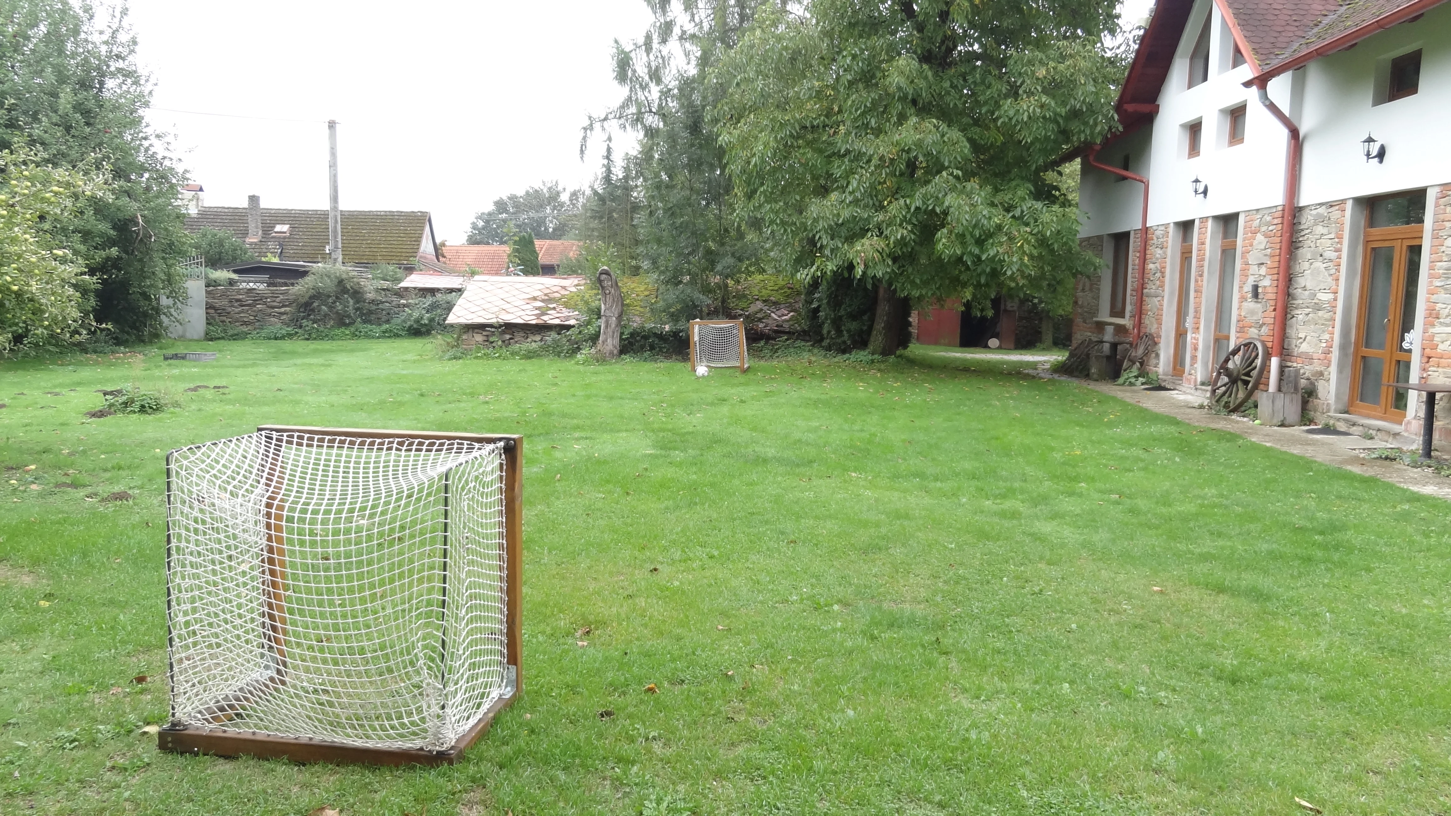 - Vybavení pro děti: Trampolína, houpačka, slack line, fotbalové hřiště, dataprojektor a hračky na půdě.