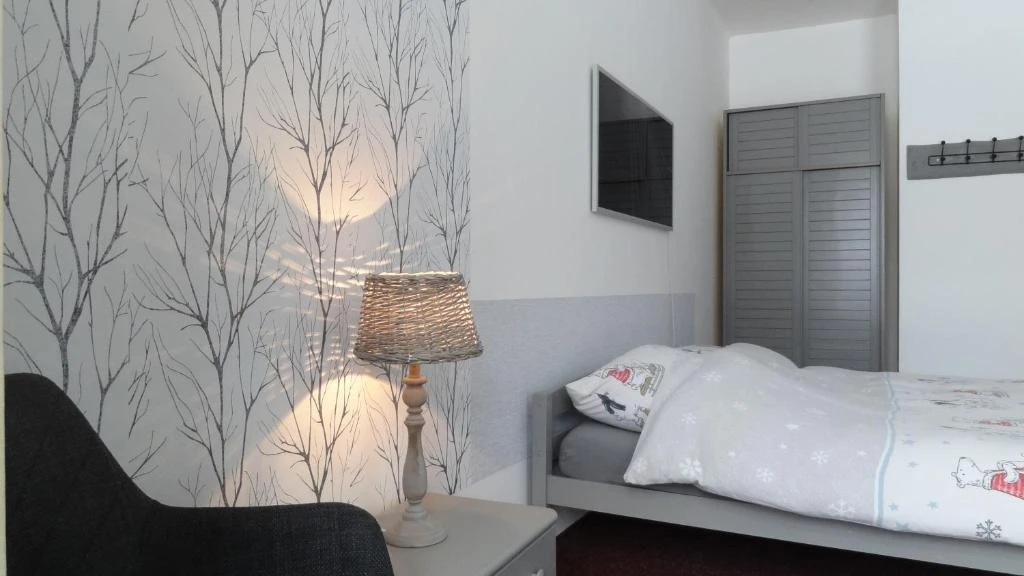 Pokoj Limetka: Kapacita pro 2-3 osoby, obsahuje dvojlůžko a jednolůžko, vlastní sociální zařízení.