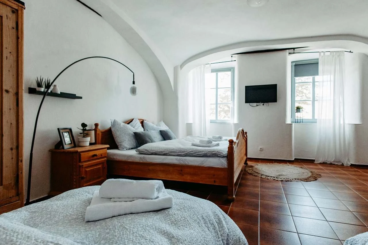 - Lůžkoviny, ručníky, osuška do sauny a mýdlo jsou součástí standardního vybavení