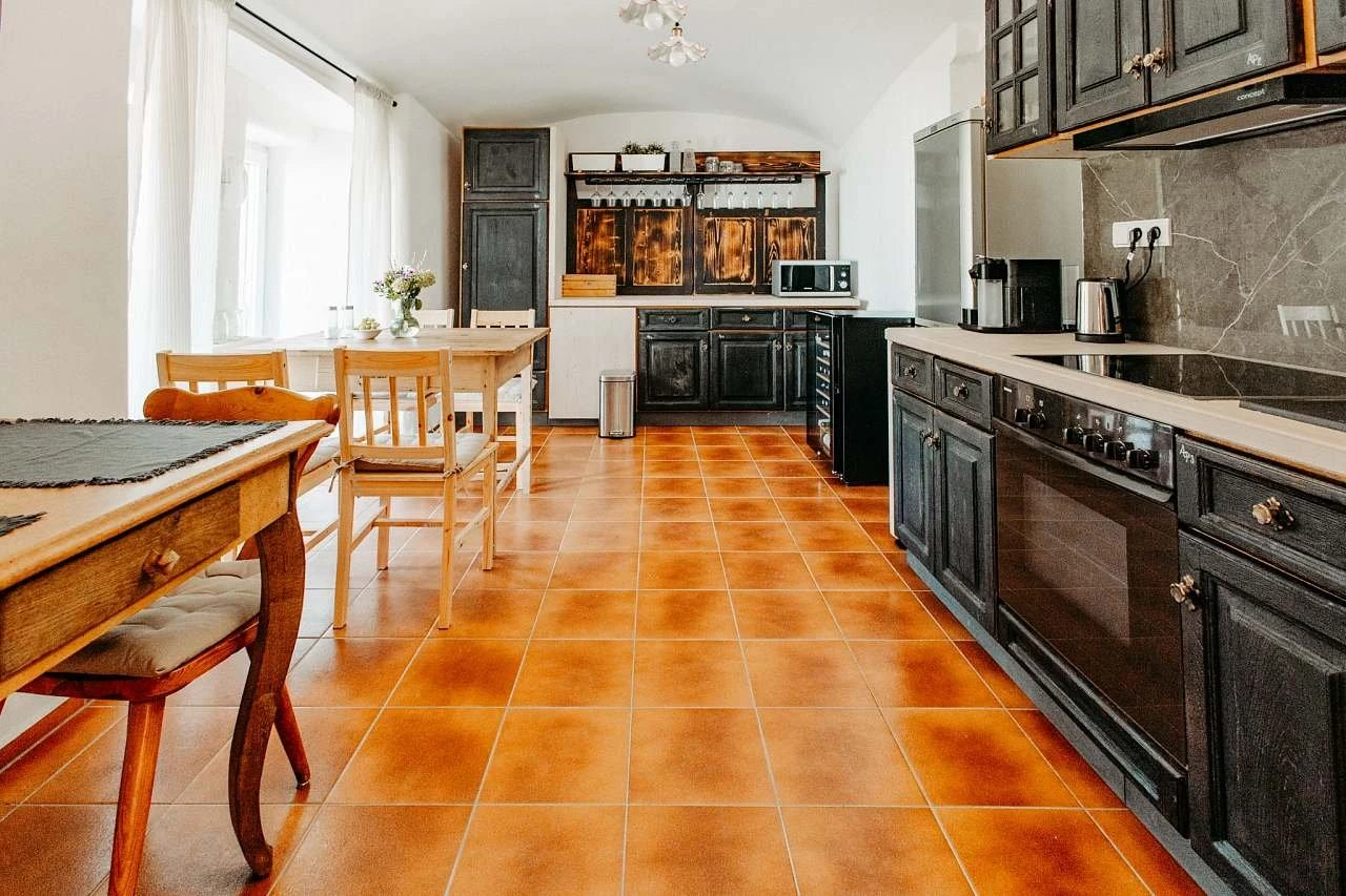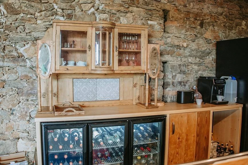 Hosté mají k dispozici sdílenou kuchyni o velikosti 16 m², přičemž každý apartmán má vlastní nádobí. Kuchyně je vybavena myčkou, elektrickou varnou deskou, troubou a lednicí s mrazákem. V apartmánu je krbová vložka, elektrické podlahové topení, Wi-Fi připojení a televize.