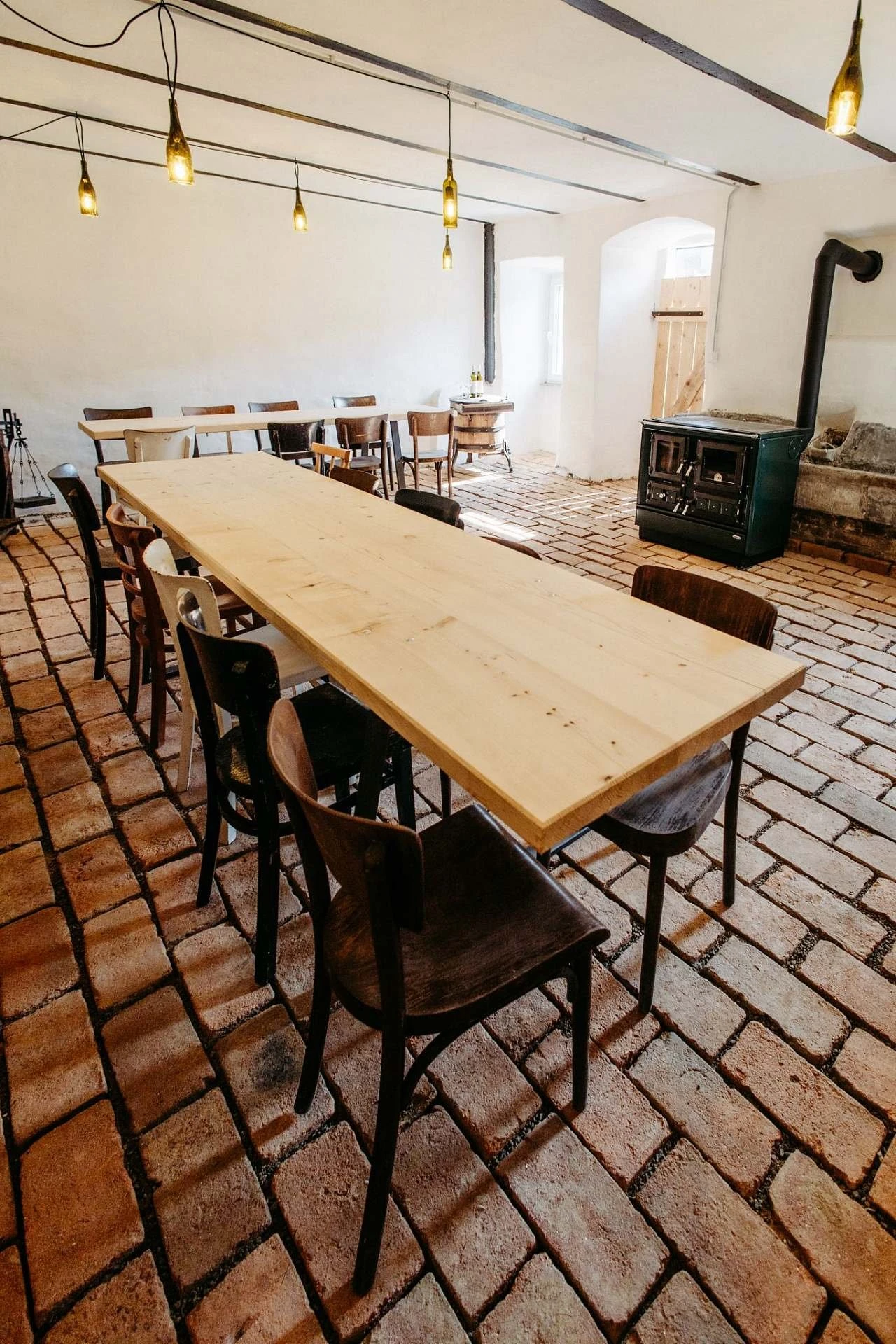 Apartmán č. 2 s vinným sklípkem má kapacitu 4 lůžka, nachází se v přízemí a jeho plocha je 39 m². Apartmán disponuje dvěma samostatnými ložnicemi a vinným sklípkem využívaným jako jídelní kout. Součástí je koupelna se sprchovým koutem a WC.Hosté mají k dispozici sdílenou kuchyni o velikosti 16 m², přičemž každý apartmán má vlastní nádobí. Kuchyně je vybavena myčkou, elektrickou varnou deskou, troubou a lednicí s mrazákem. V apartmánu je krbová vložka, elektrické podlahové topení, Wi-Fi připojení a televize.V ceně pobytu je zahrnut neomezený přístup do společenské stodoly, bazén se slanou vodou, sauny s koupacím sudem a posezení na zahradě v pergolách. K dispozici je také plynový gril a možnost využití uzavřené zahrady s ovocným sadem o rozloze cca 2 800 m², vhodné k relaxaci.
