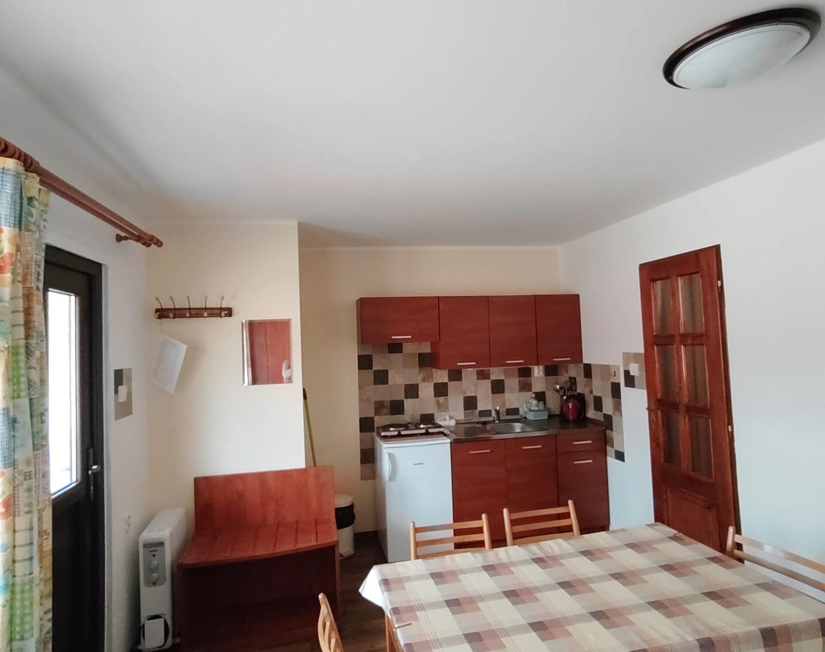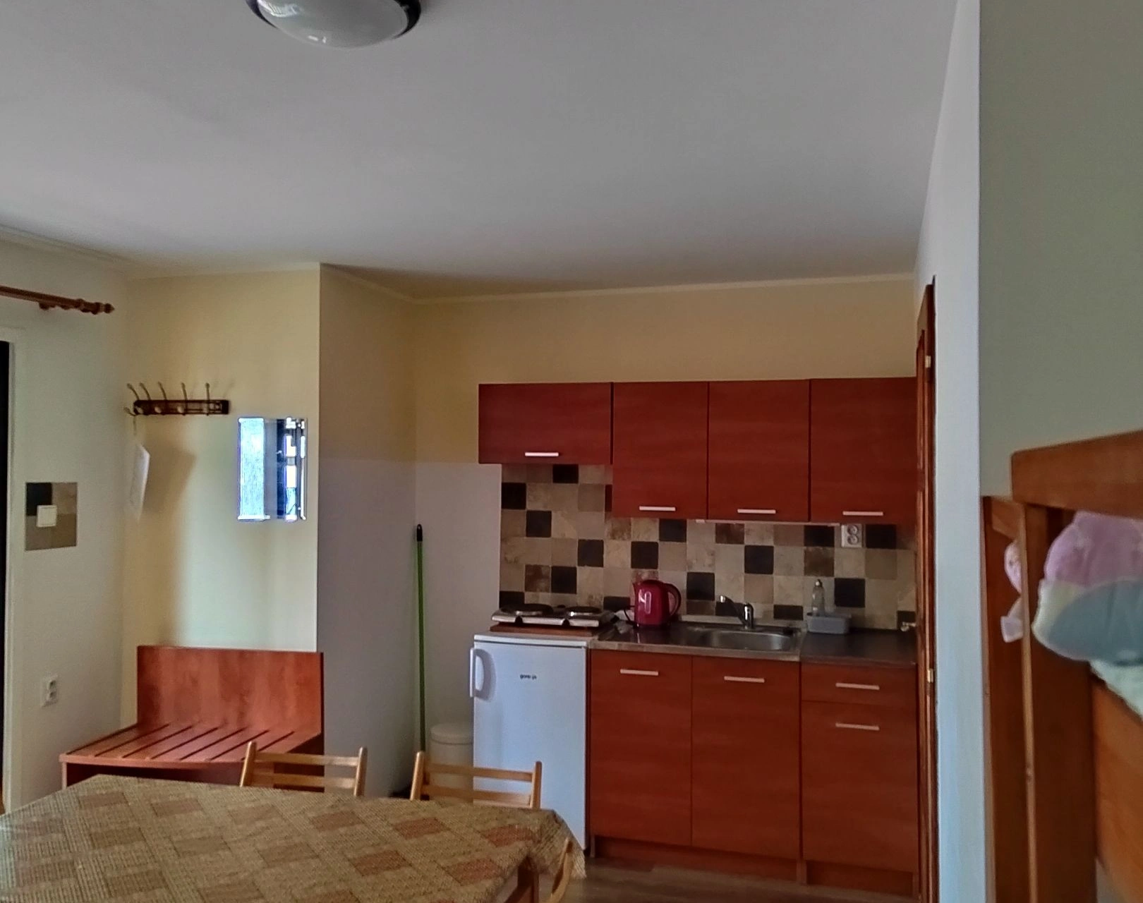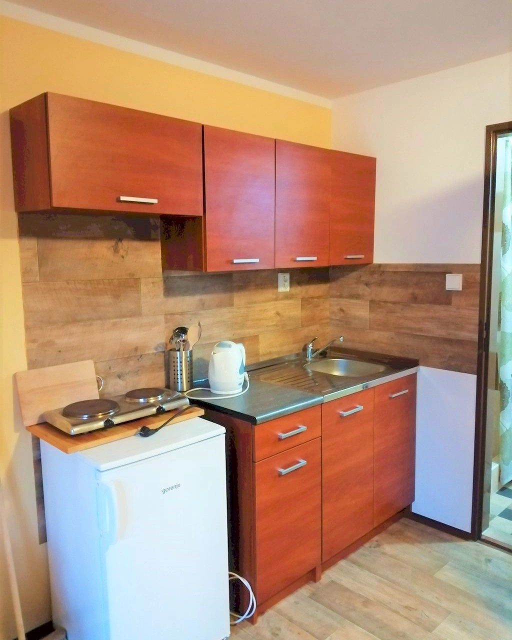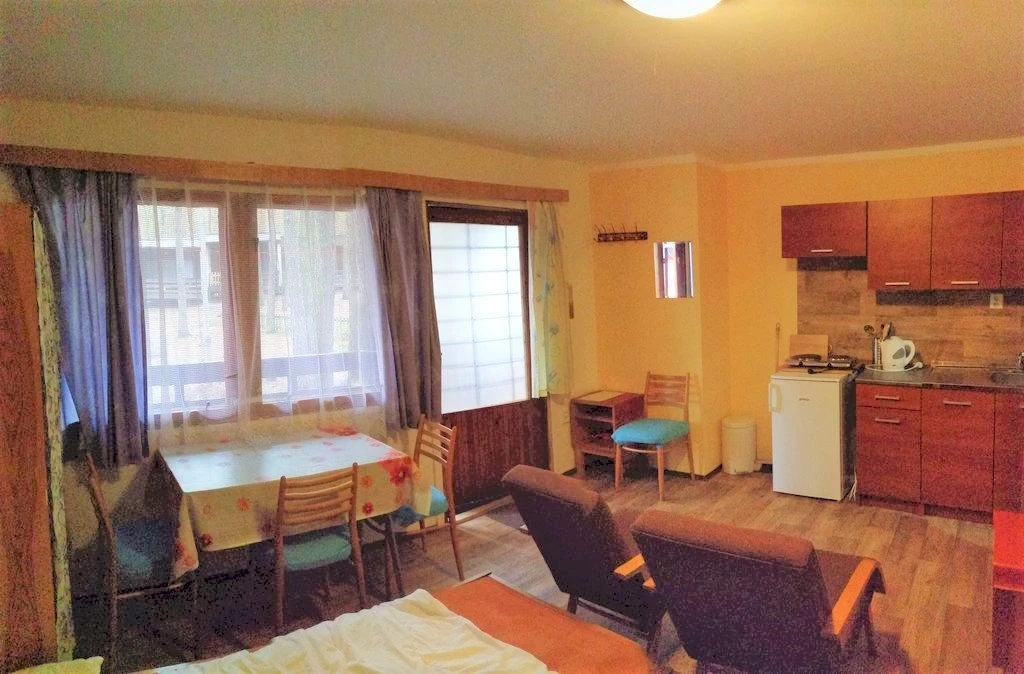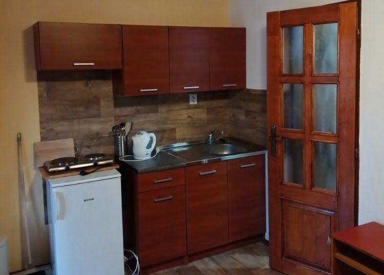- Kuchyňský kout: elektrický vařič, mikrovlnná trouba, rychlovarná konvice, lednička, jídelní sezení pro 4 osoby