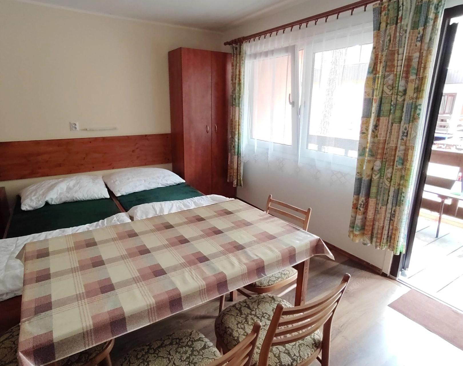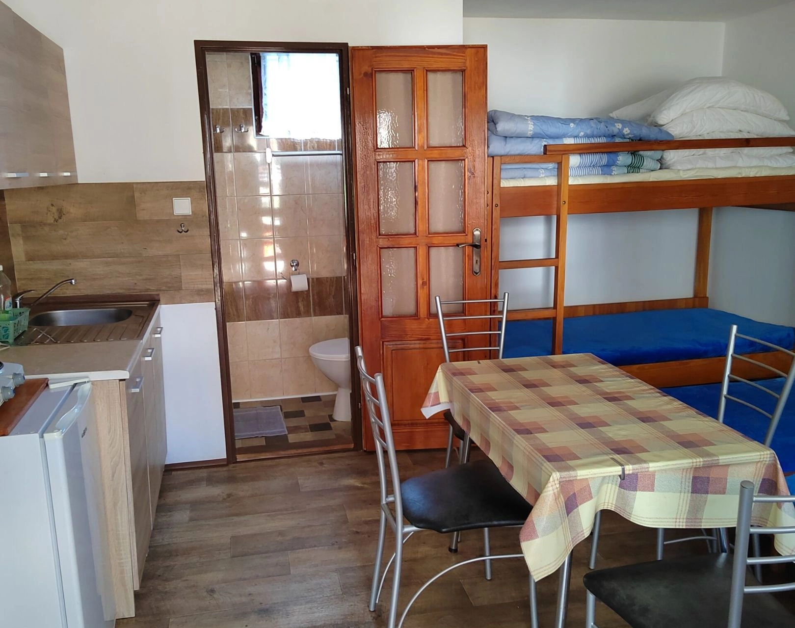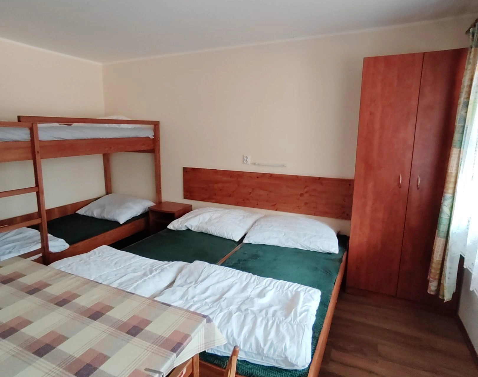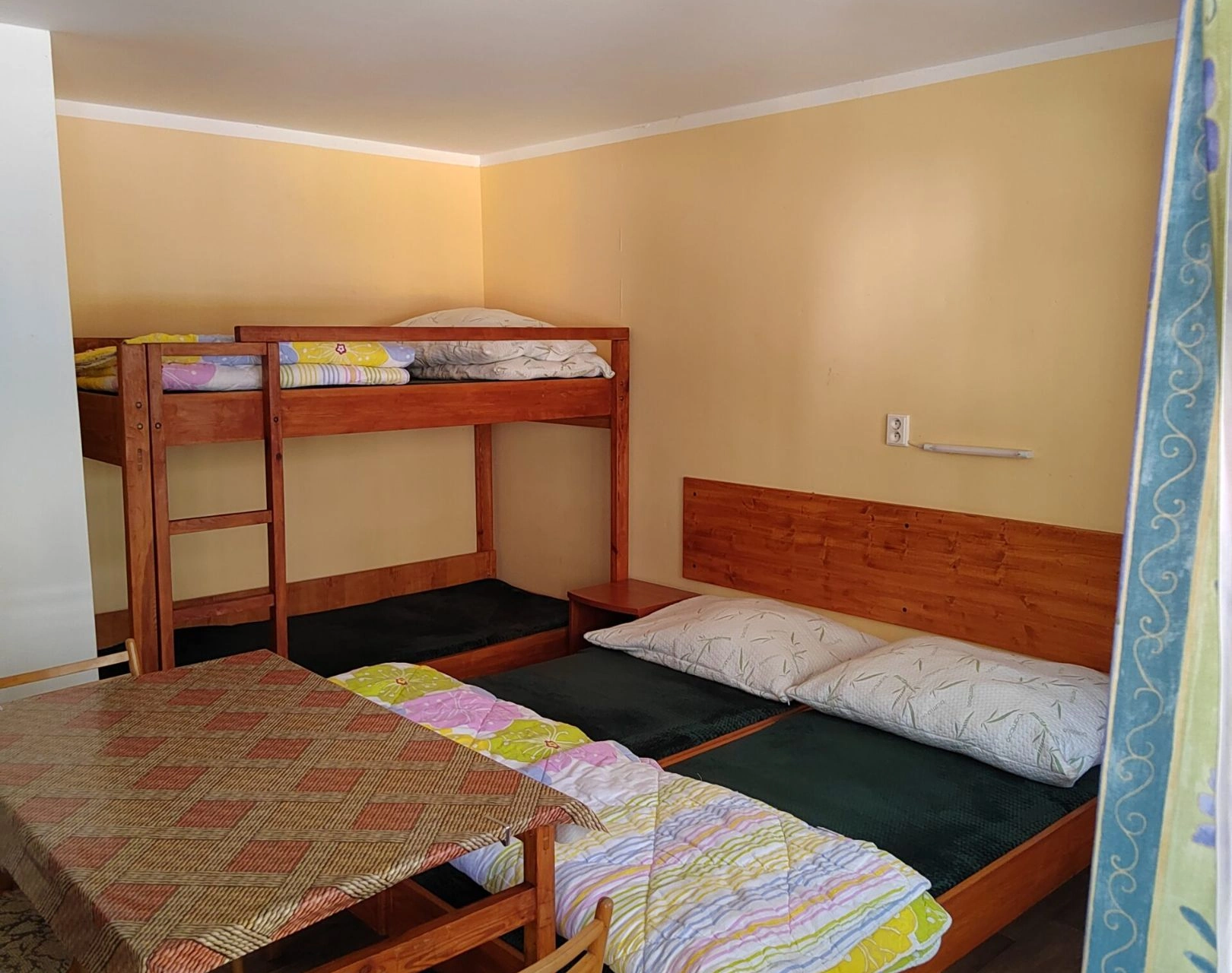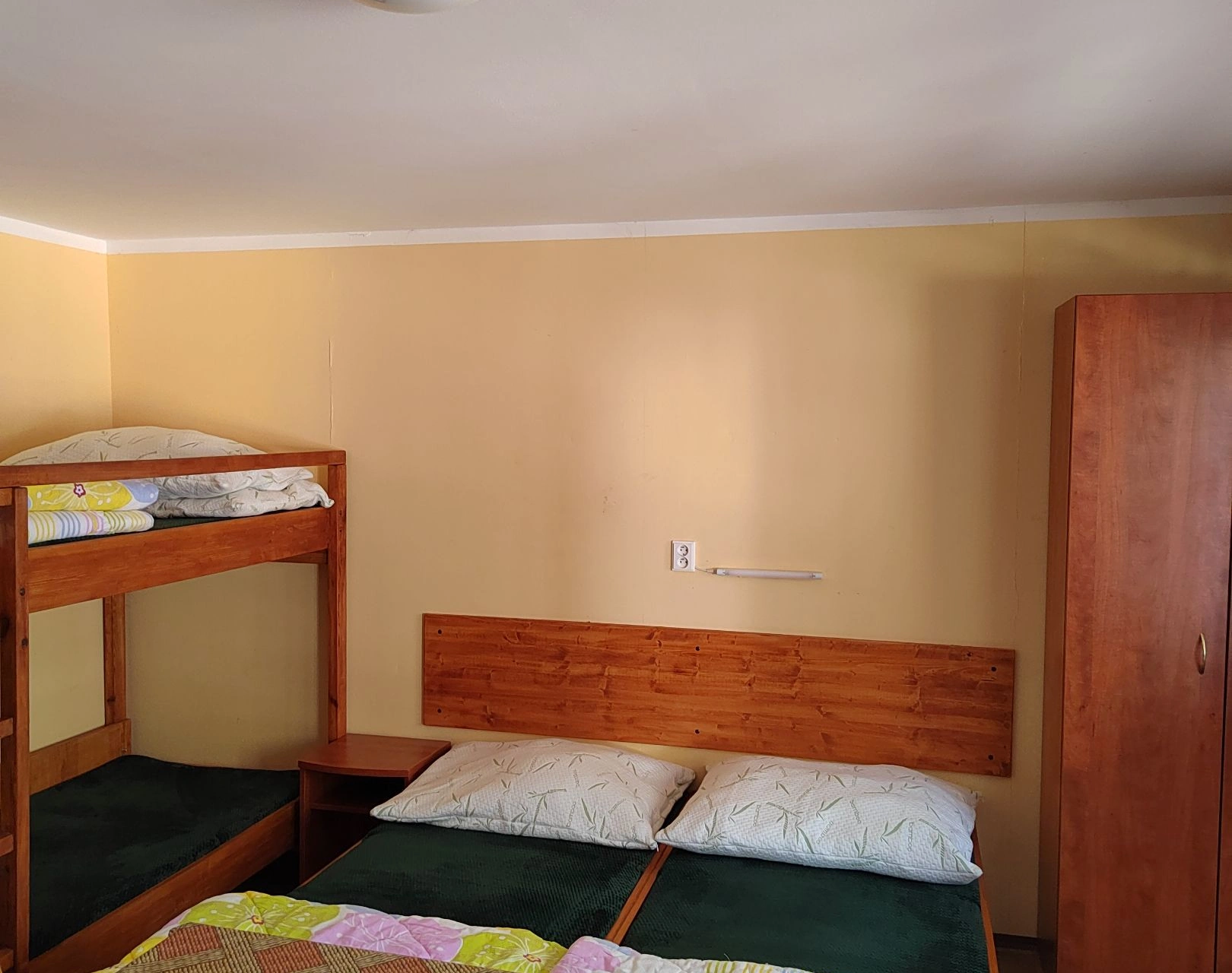 - Ložnice: 2 jednolůžkové postele (možnost spojit do dvoulůžka) + 1 patrová postel