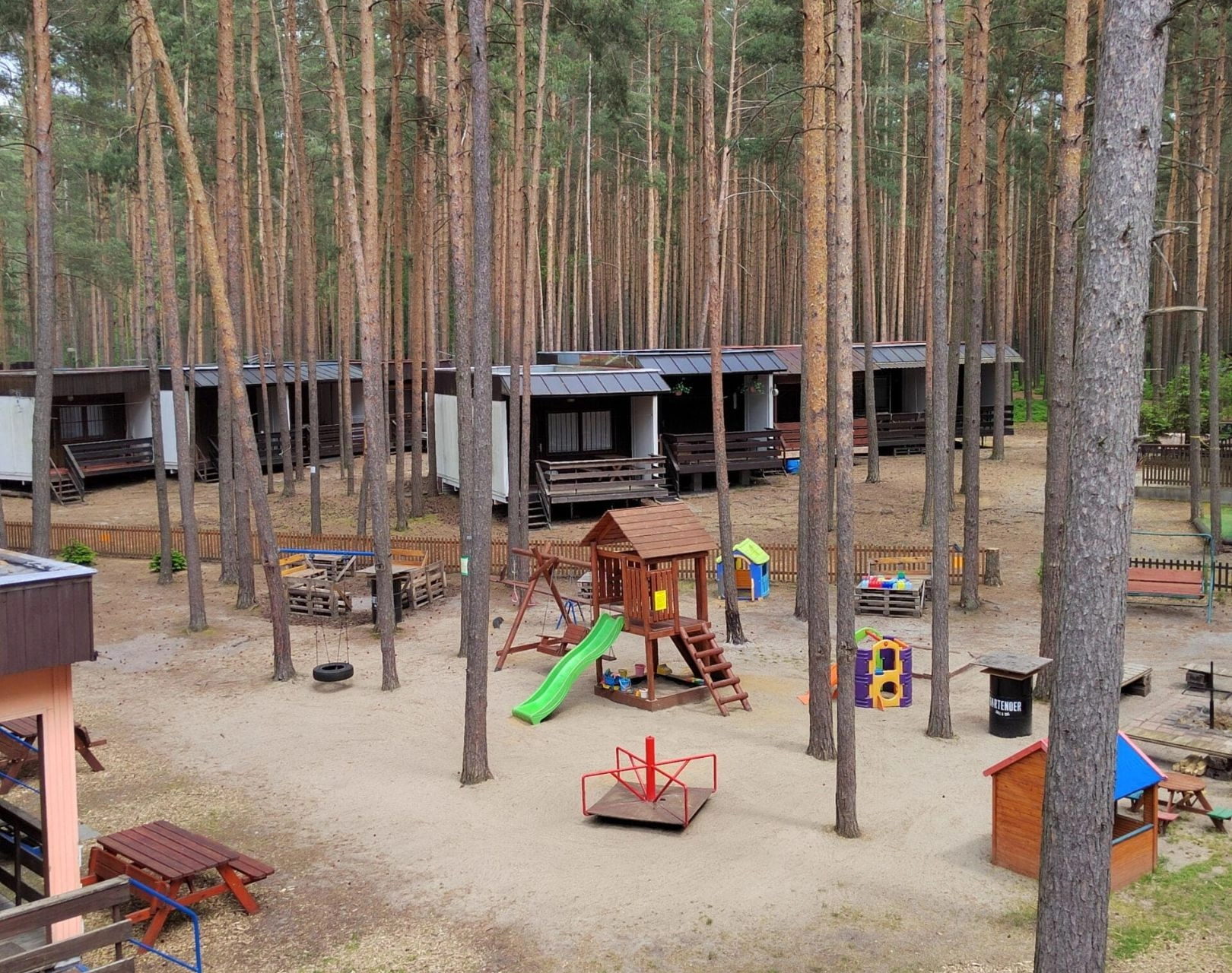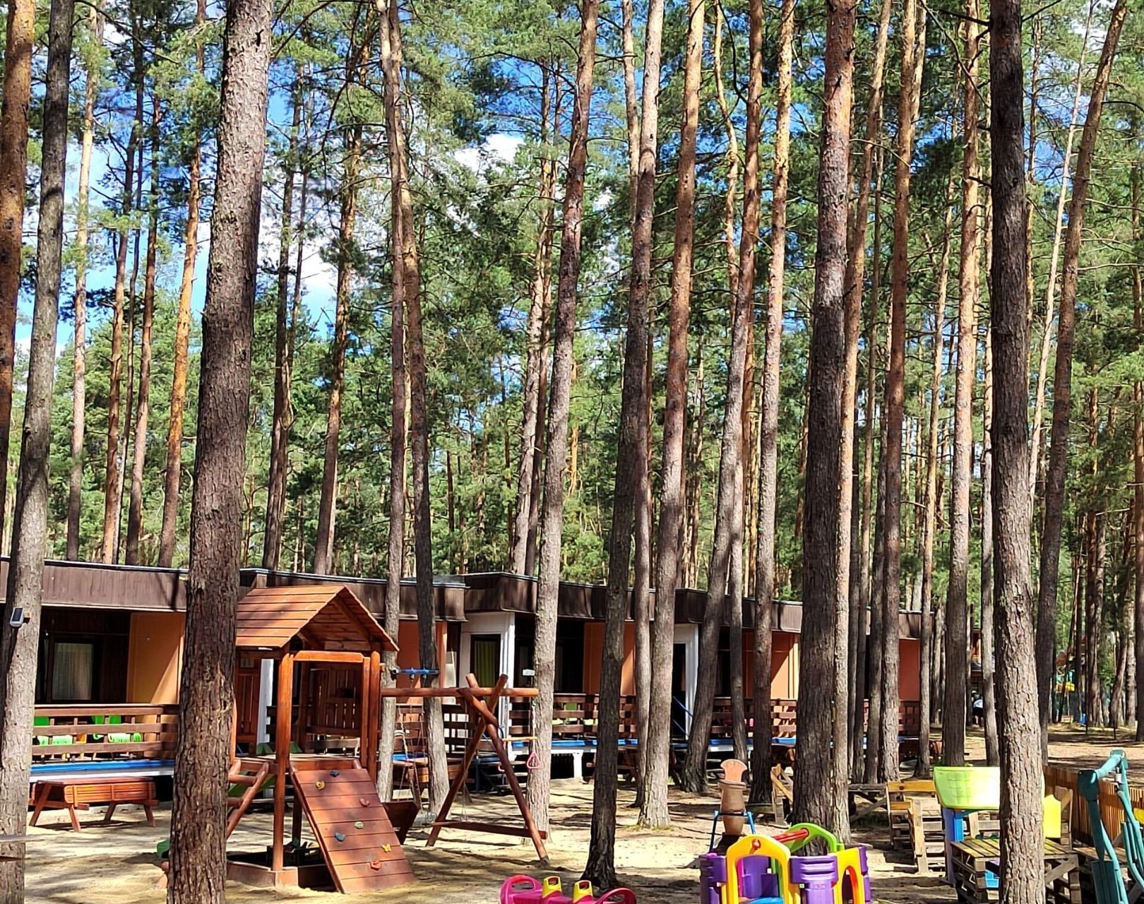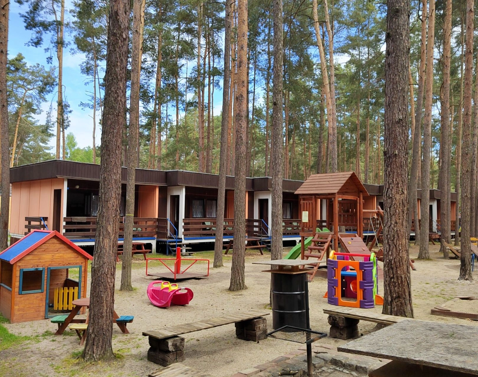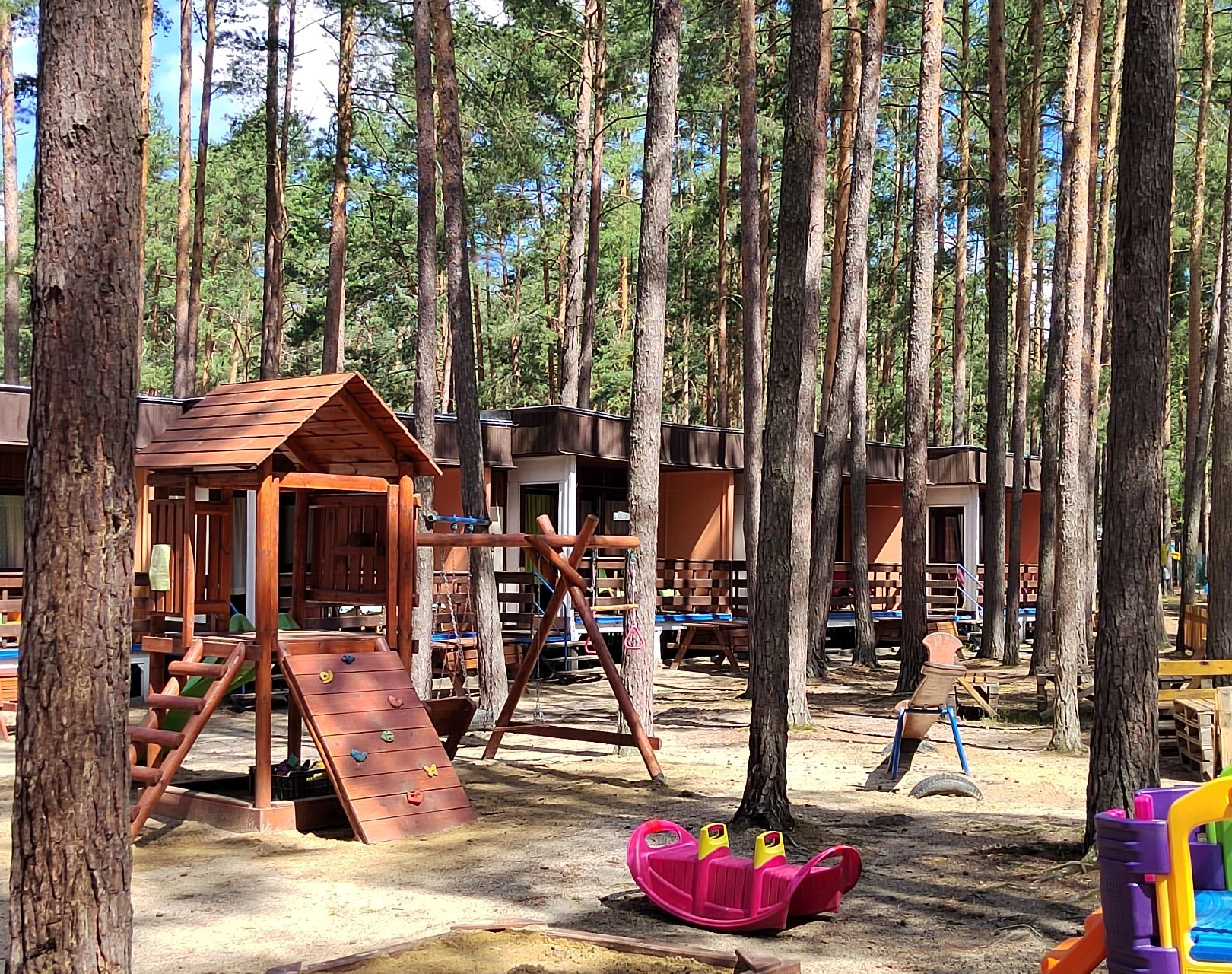 - Dětské hřiště: pískoviště, skluzavka, houpačky, hračky pro děti