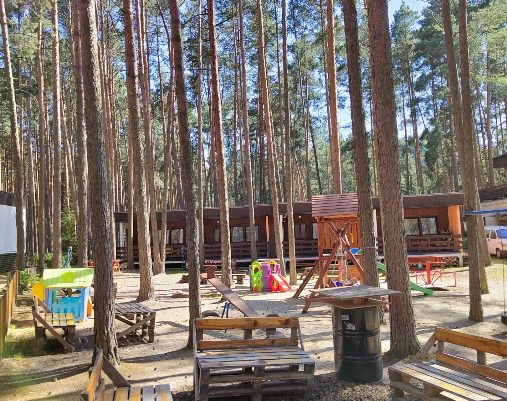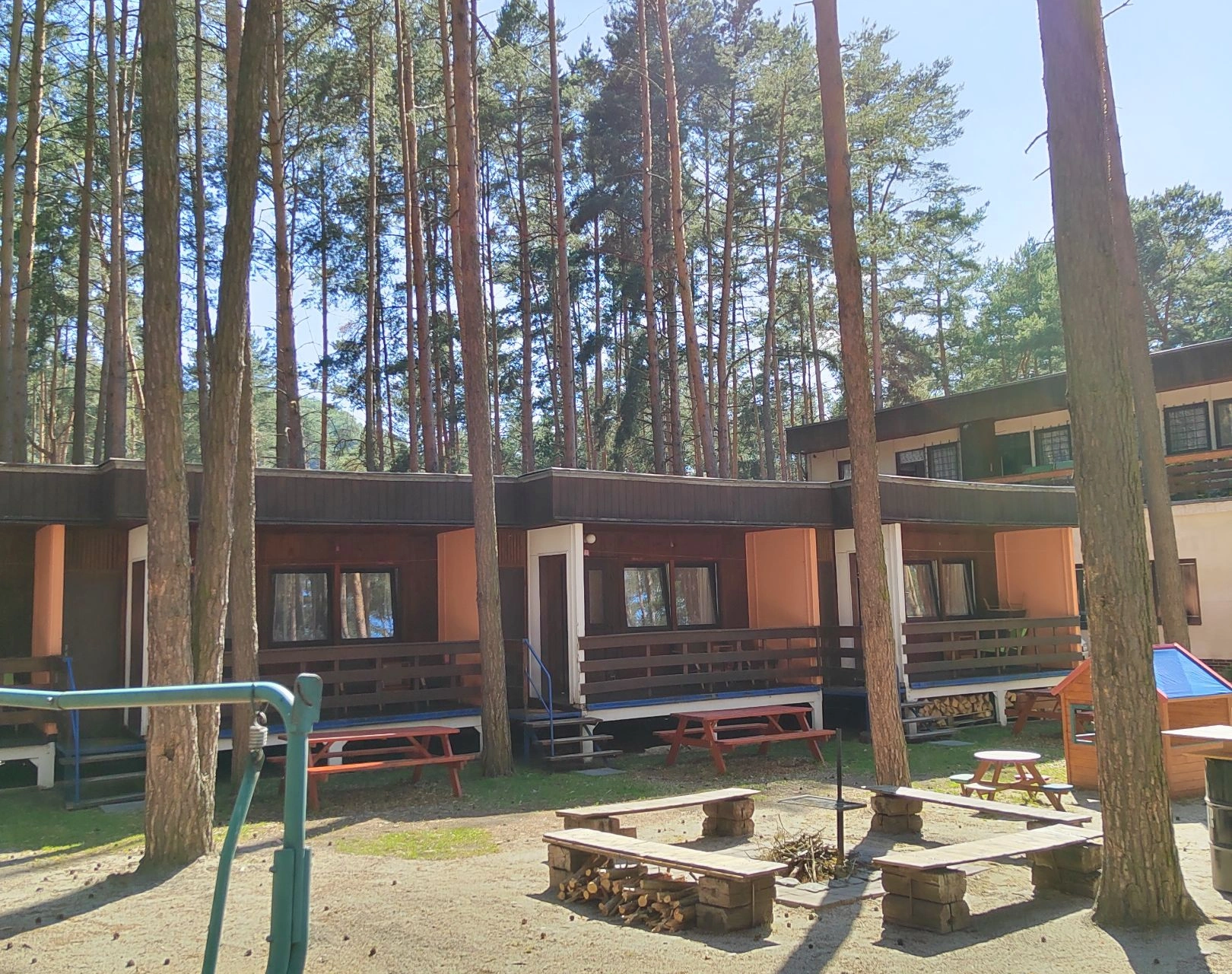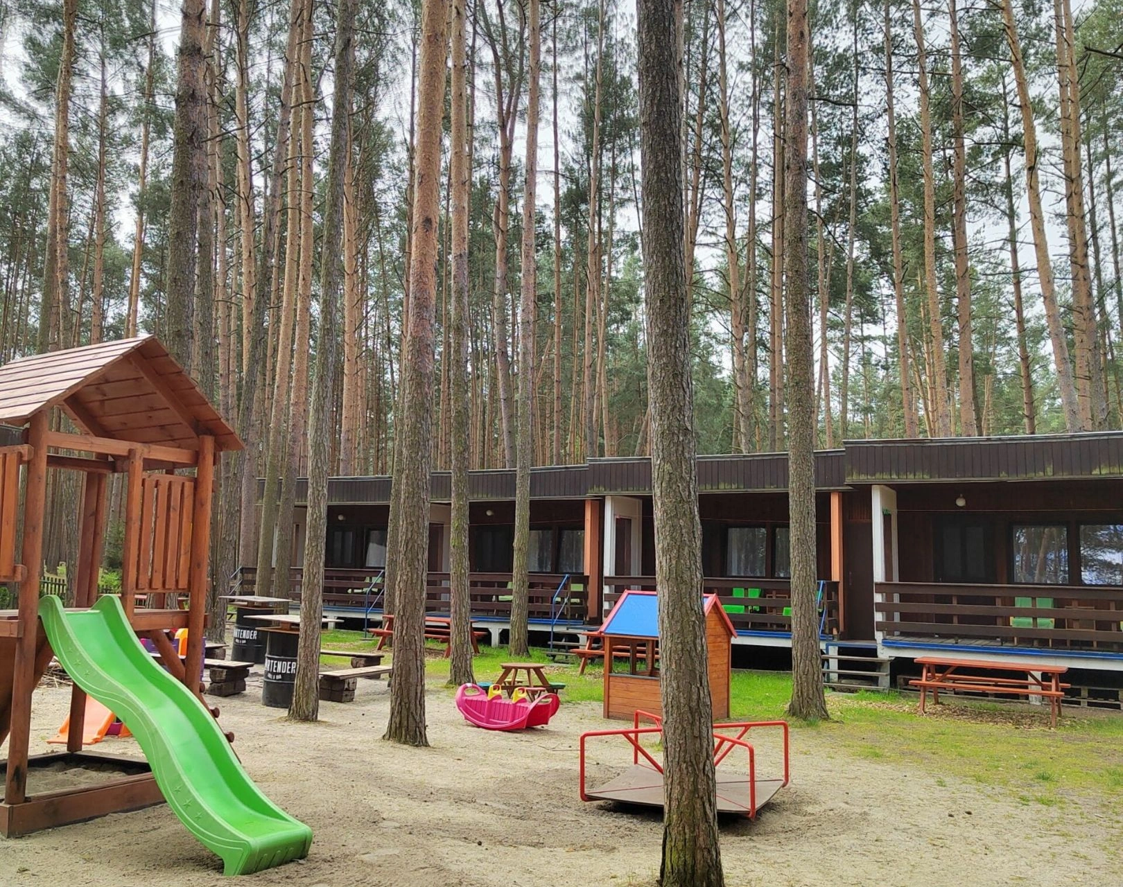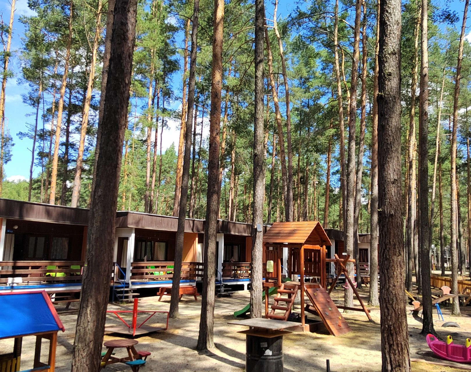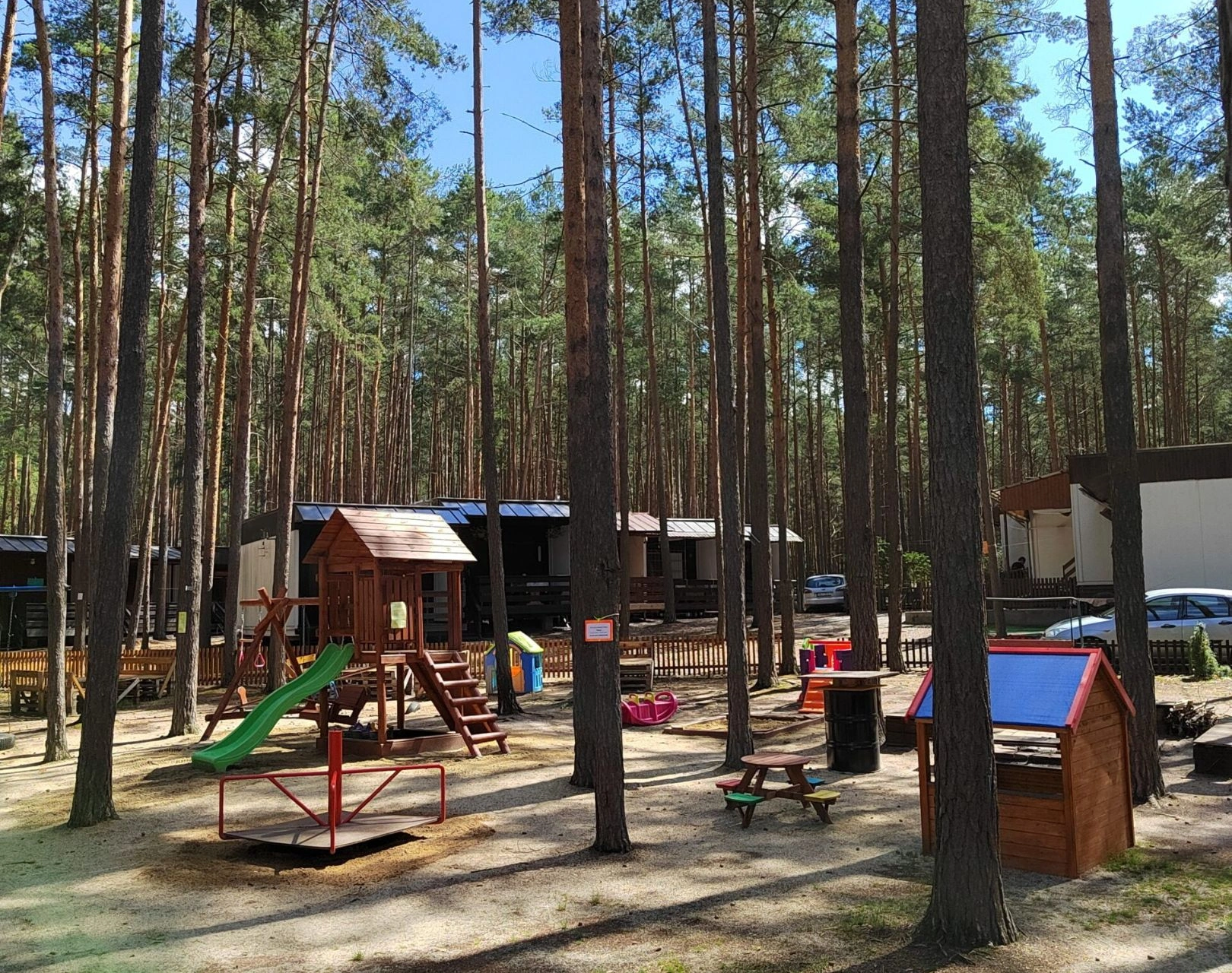 V blízkosti jsou restaurace, stánky s občerstvením, základní potraviny, drogerie a suvenýry. Areál je vhodný pro rodiny s dětmi a malé domácí zvíře je povoleno. Celková kapacita ubytování je 40 lůžek v 10 chatkách, každá chatka vybavena pro praktický pobyt.