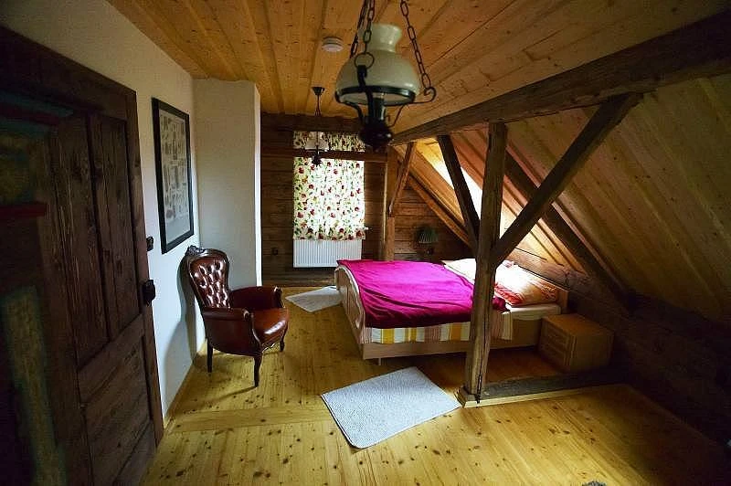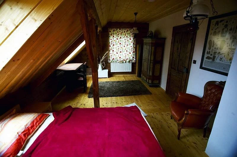 Ubytování v chalupě U Jezevce zahrnuje 5 ložnic. Tři ložnice mají dvoulůžka, dvě ložnice mají 4 lůžka. Každá ložnice umožňuje instalaci dětské přistýlky. Pokoje jsou vybaveny stylovým nábytkem.