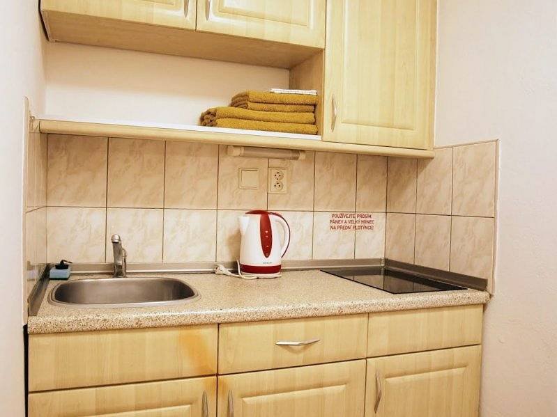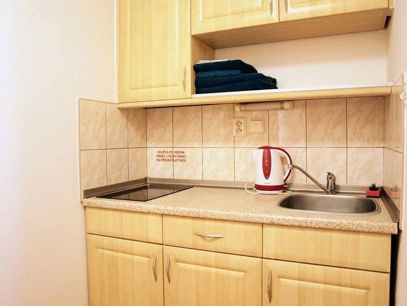 - Kuchyňka: plně vybavená, lednice, mikrovlnná trouba, rychlovarná konvice