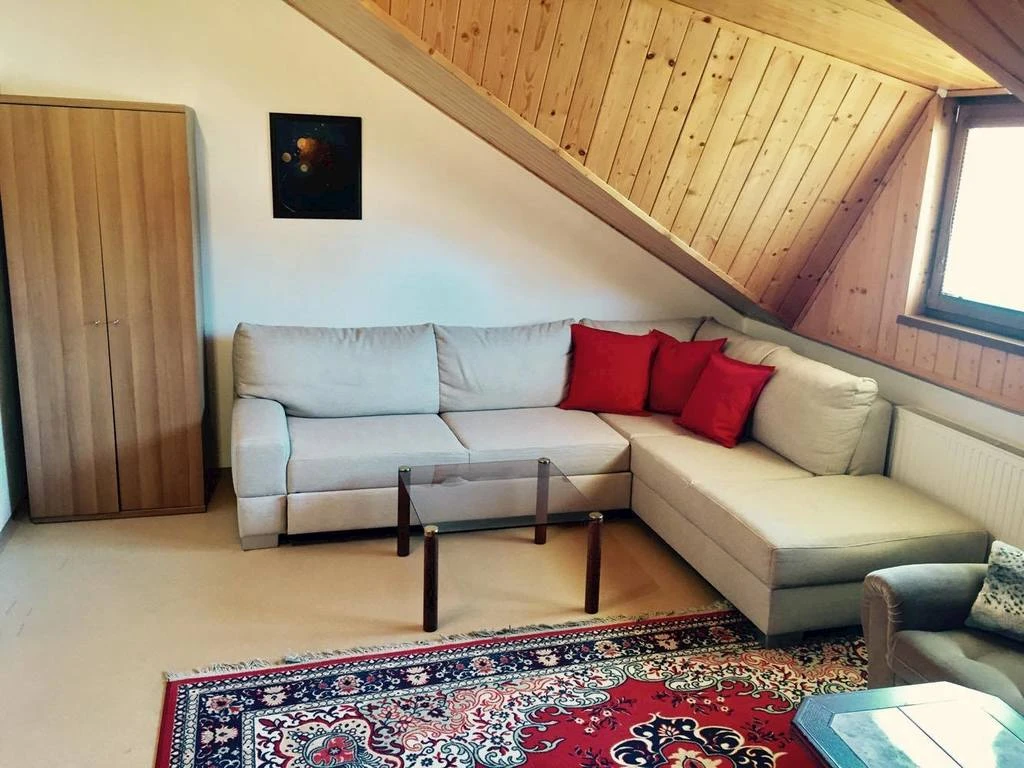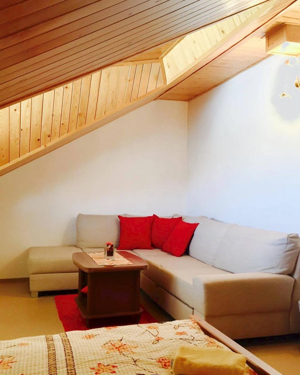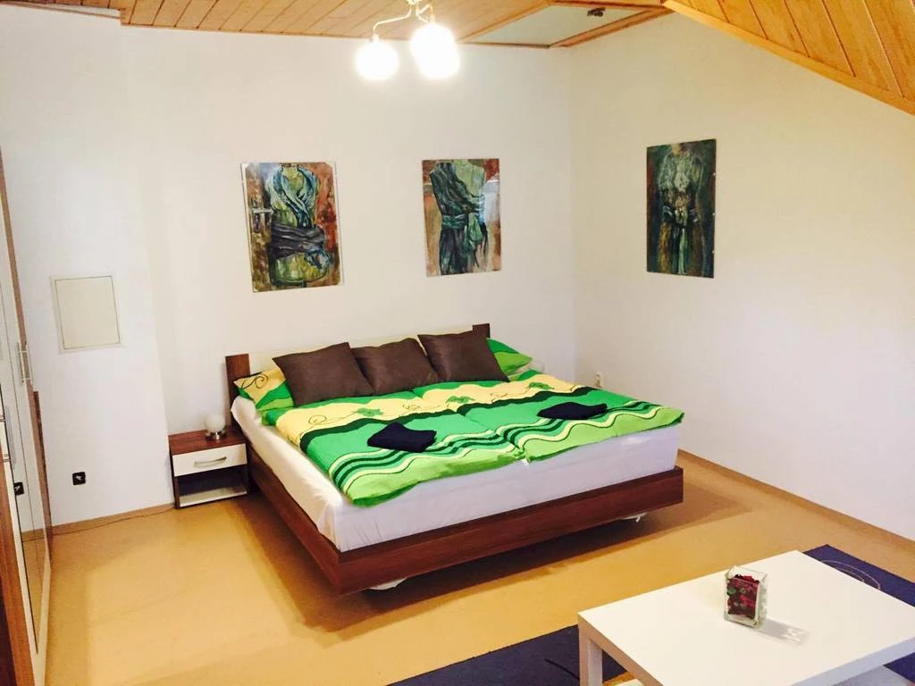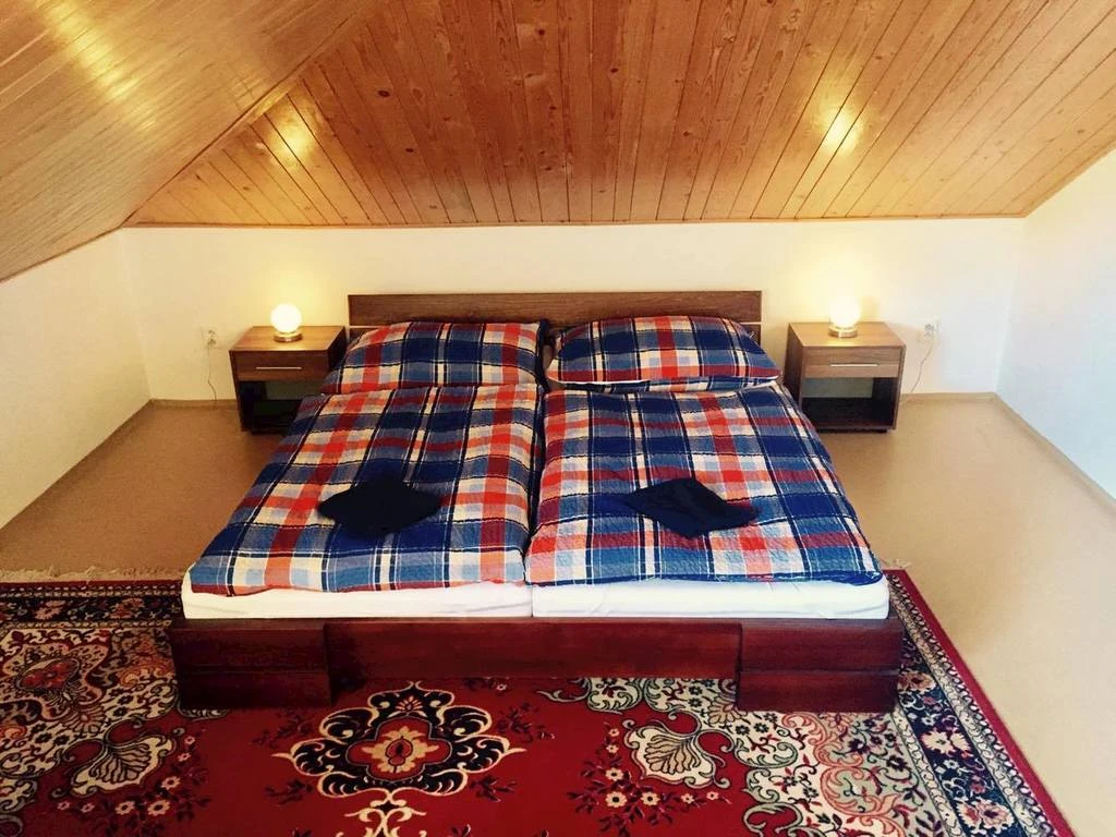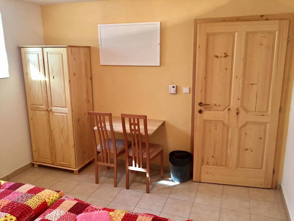 - Podkrovní apartmán: 3 ložnice (2× dvoulůžkové s gaučem jako přistýlka pro 2 osoby, 1× třílůžková)