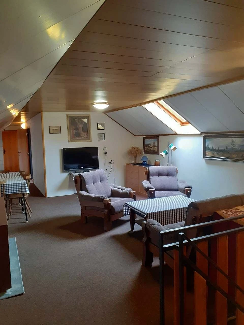 - Společenská místnost s krbem / krbovými kamny, TV a DVD přehrávačem