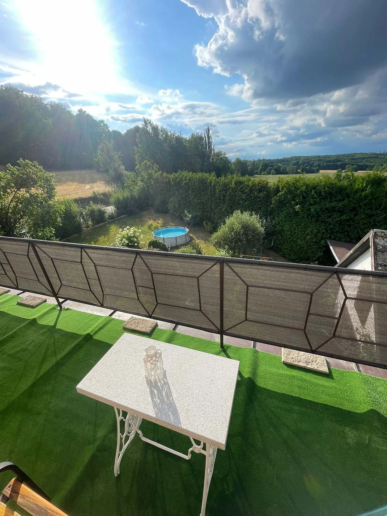 Zahrada je oplocená a určena pouze pro hosty. Nachází se zde venkovní posezení pod pergolou s krbem a grilem, trampolína pro děti a v letní sezóně také bazén. Ubytování je vhodné pro mazlíčky. Objekt je bez přítomnosti majitele. Během sezóny jsou preferovány týdenní pobyty.