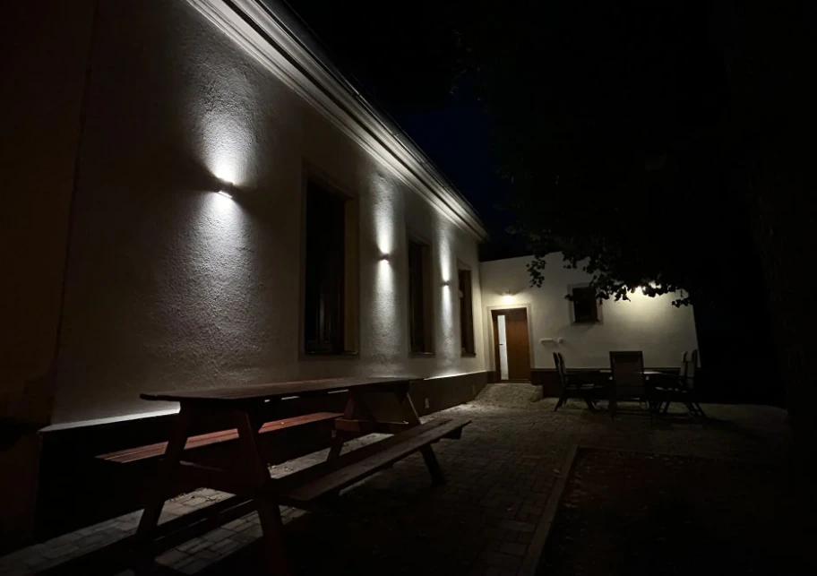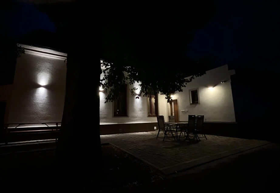 Možnost ubytování až pro 20 osob přímo v objektu. Pro bezpečnost je celý prostor monitorován venkovními kamerami. Parkování je možné až pro 10 vozidel a je zajištěna možnost nabíjení elektrokol.