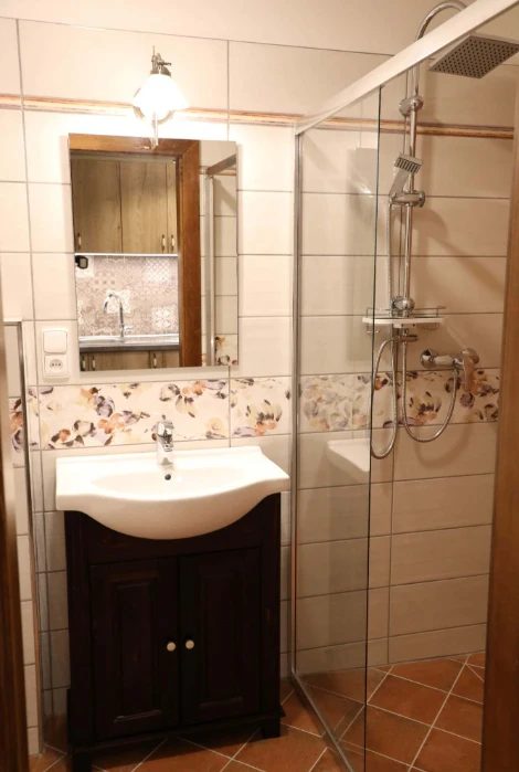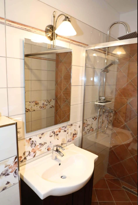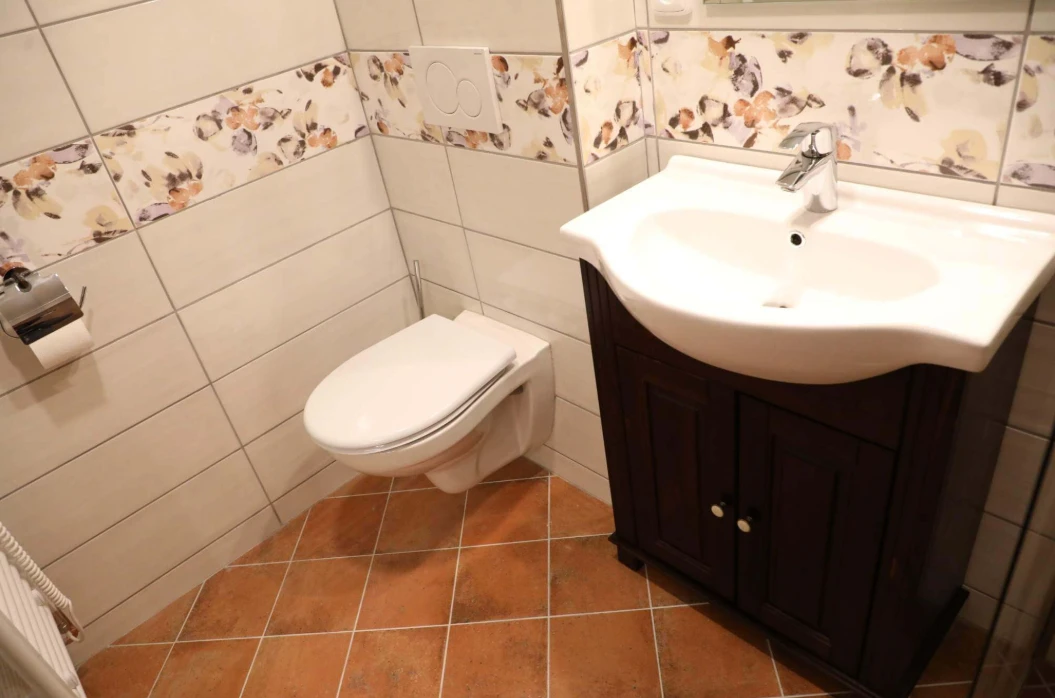 - Koupelny: 2× se sprchovým koutem, umyvadlem a WC