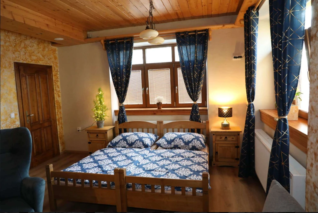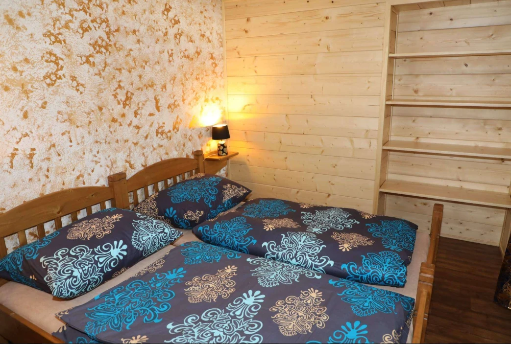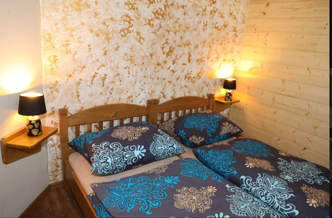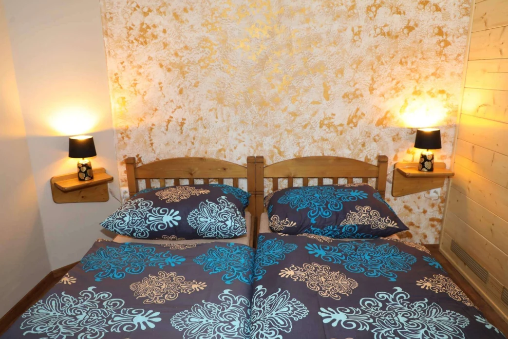 - Pokoje: 1× pokoj se 4 lůžky, 2× pokoje se 2 lůžky, 1× mezonetový pokoj (dole 3 lůžka, nahoře 4 lůžka)